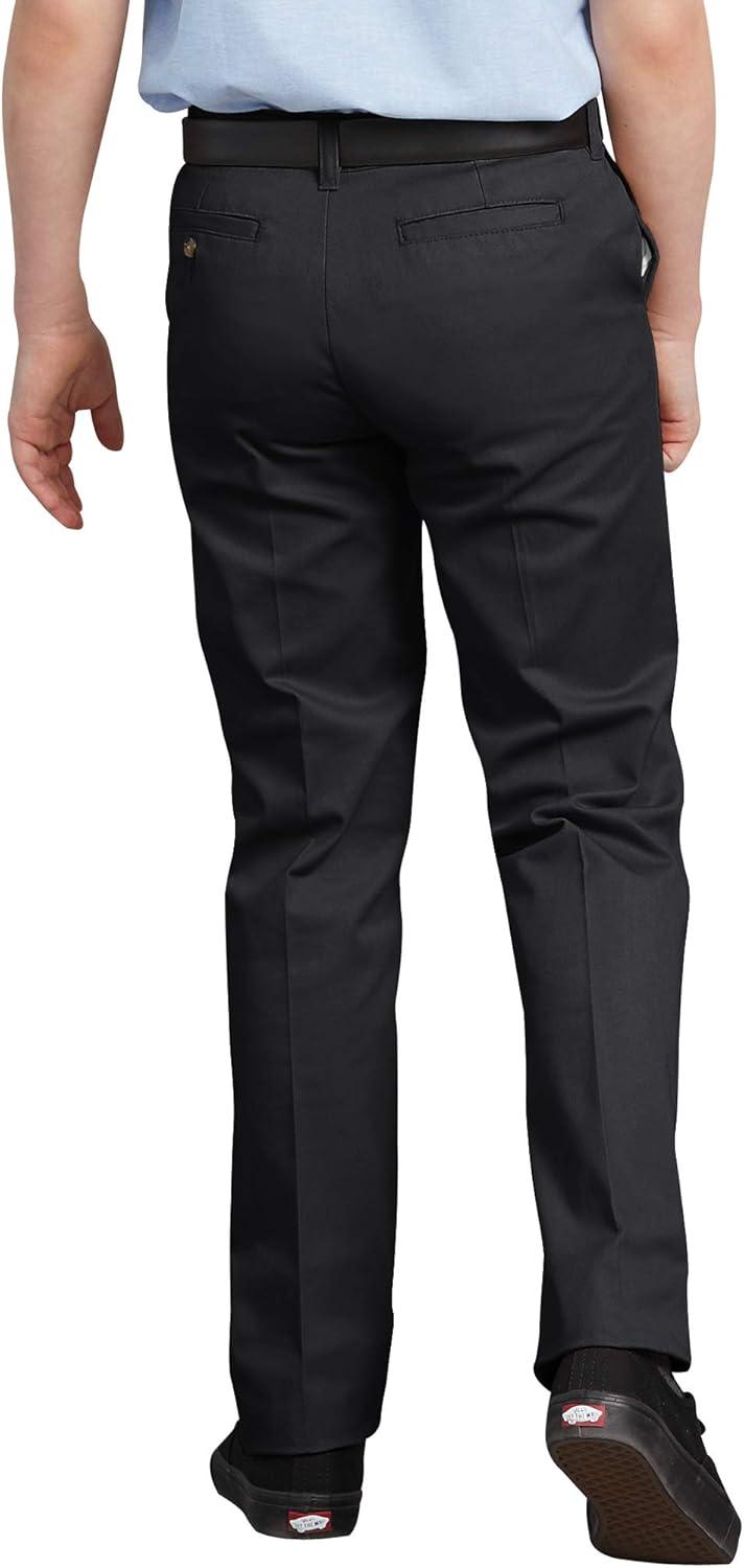 Dickies slim fitting pant through the seat and thigh, sits slightly below the waist with an interior flex waist adjustable waistband. Cotton rich stretch twill fabric for comfort and ease of movement