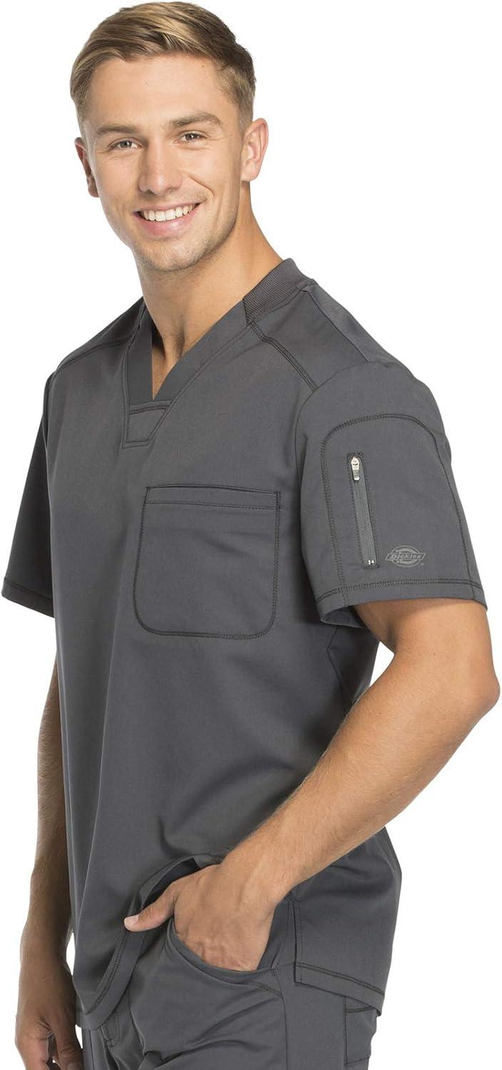 Dickies Dynamix Scrubs for Men Athletic-Inspired V-Neck Chest Pocket Scrub Top with Four-Way Stretch & Moisture Wicking DK610(Pewter)
