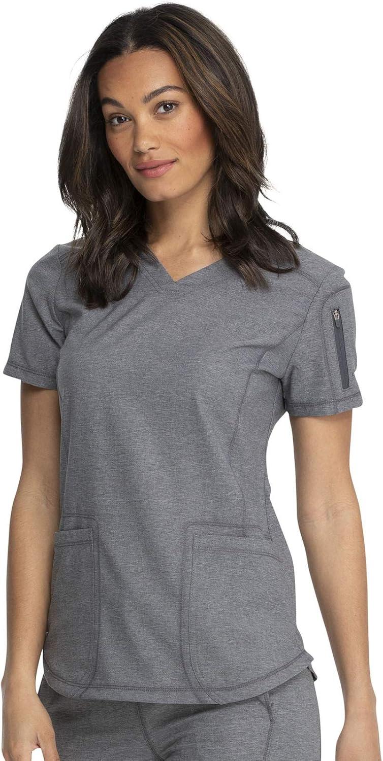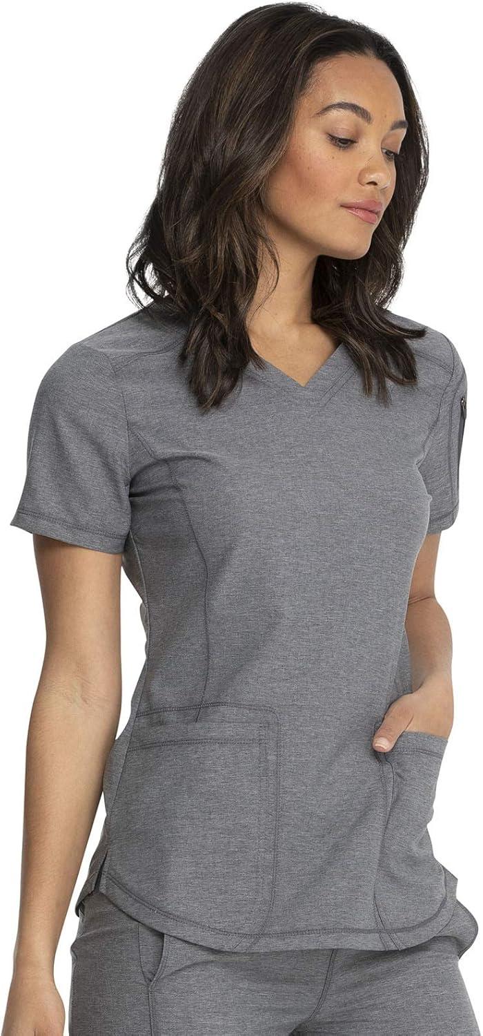 Dickies Dynamix Womens Tops, Athletic-Inspired V-Neck Scrub Top with Four-Way Stretch and Moisture Wicking DK730(Heather Grey)