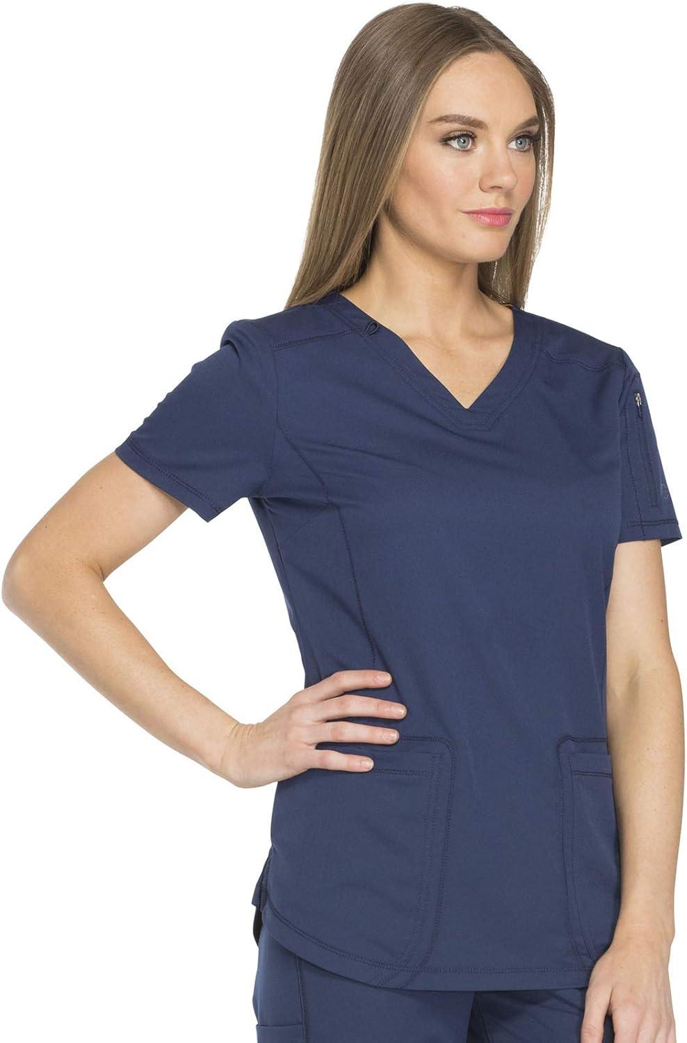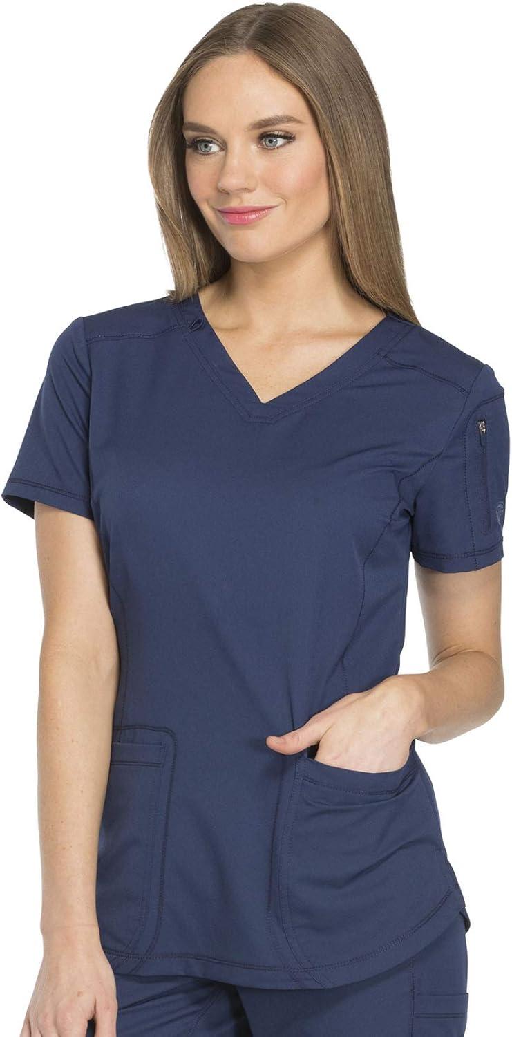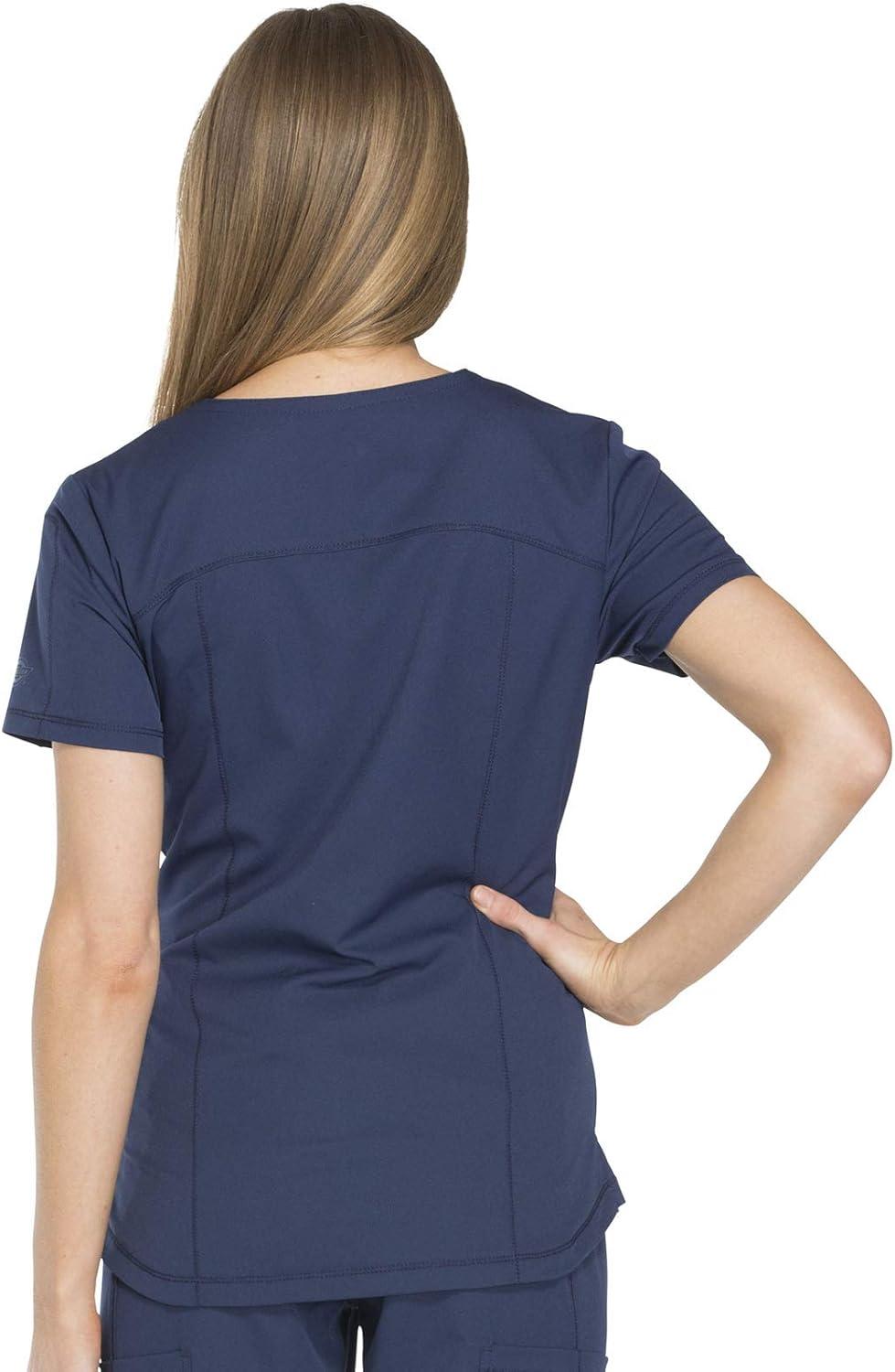 Dickies Dynamix Womens Tops, Athletic-Inspired V-Neck Scrub Top with Four-Way Stretch and Moisture Wicking DK730(Navy)