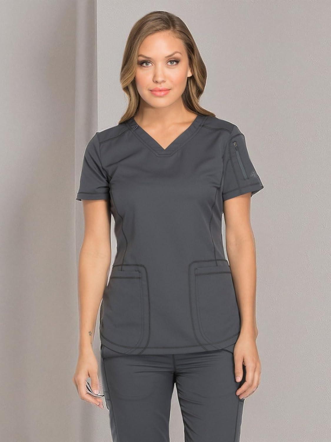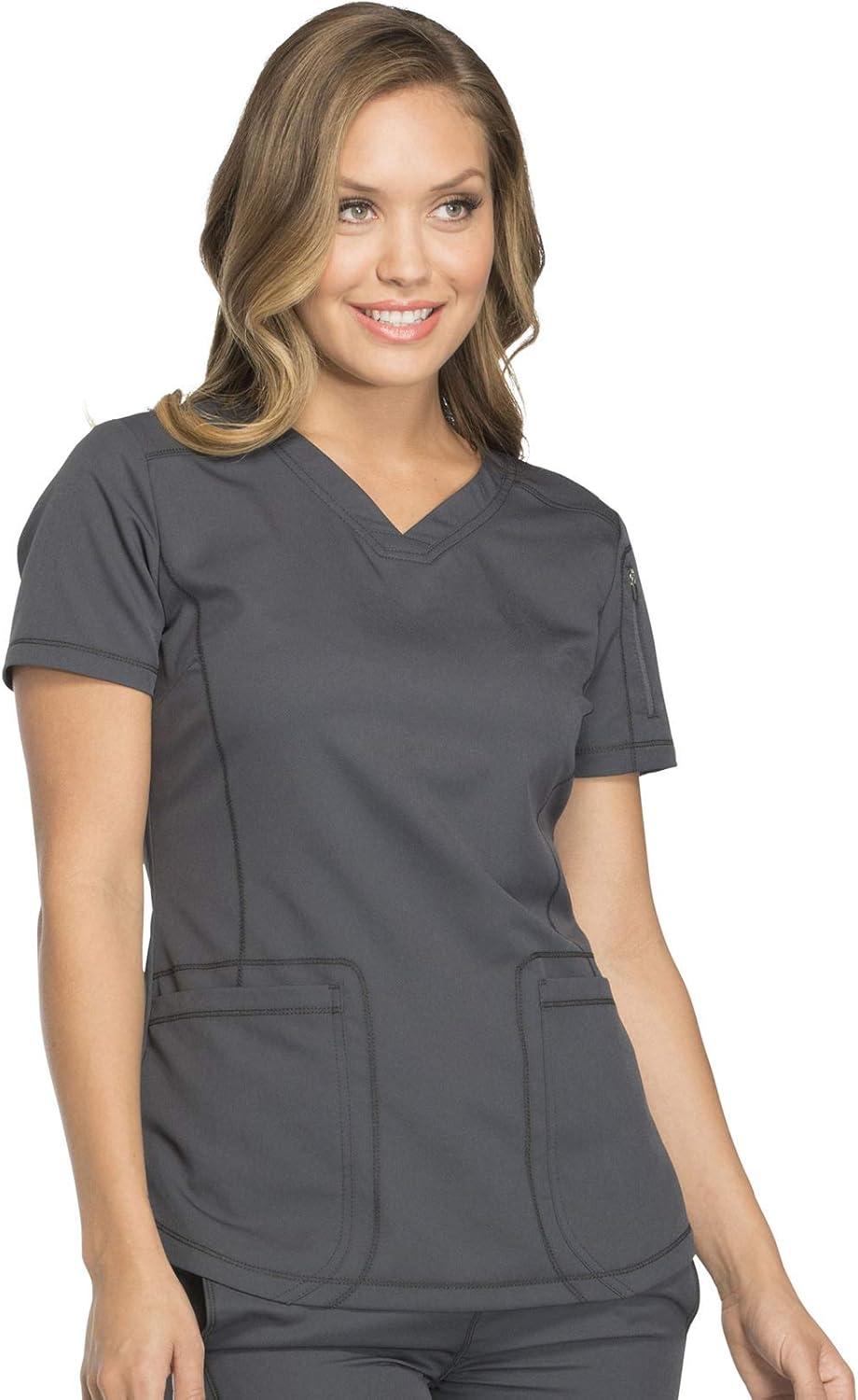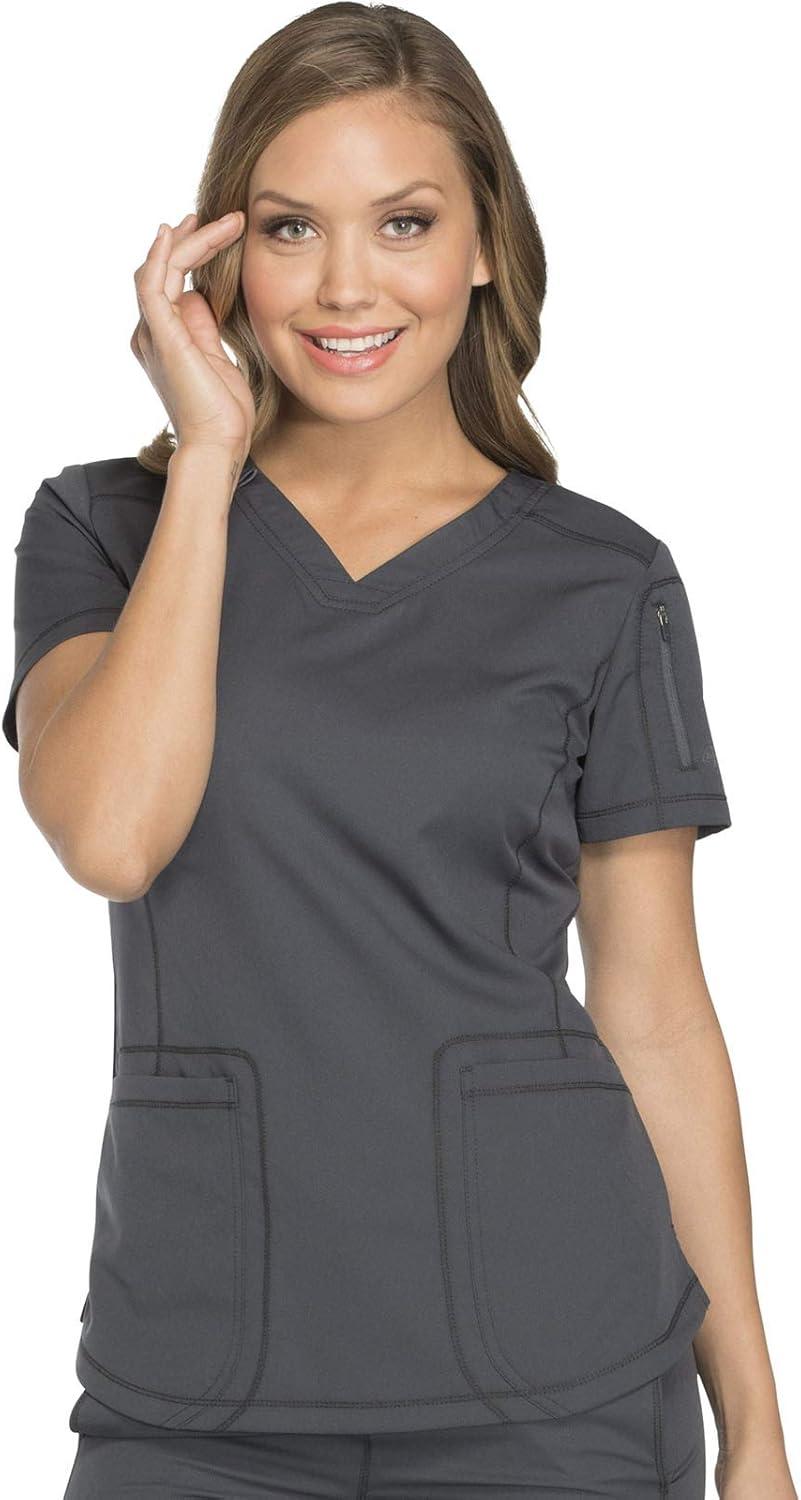 Dickies Dynamix Womens Tops, Athletic-Inspired V-Neck Scrub Top with Four-Way Stretch and Moisture Wicking DK730(Pewter)