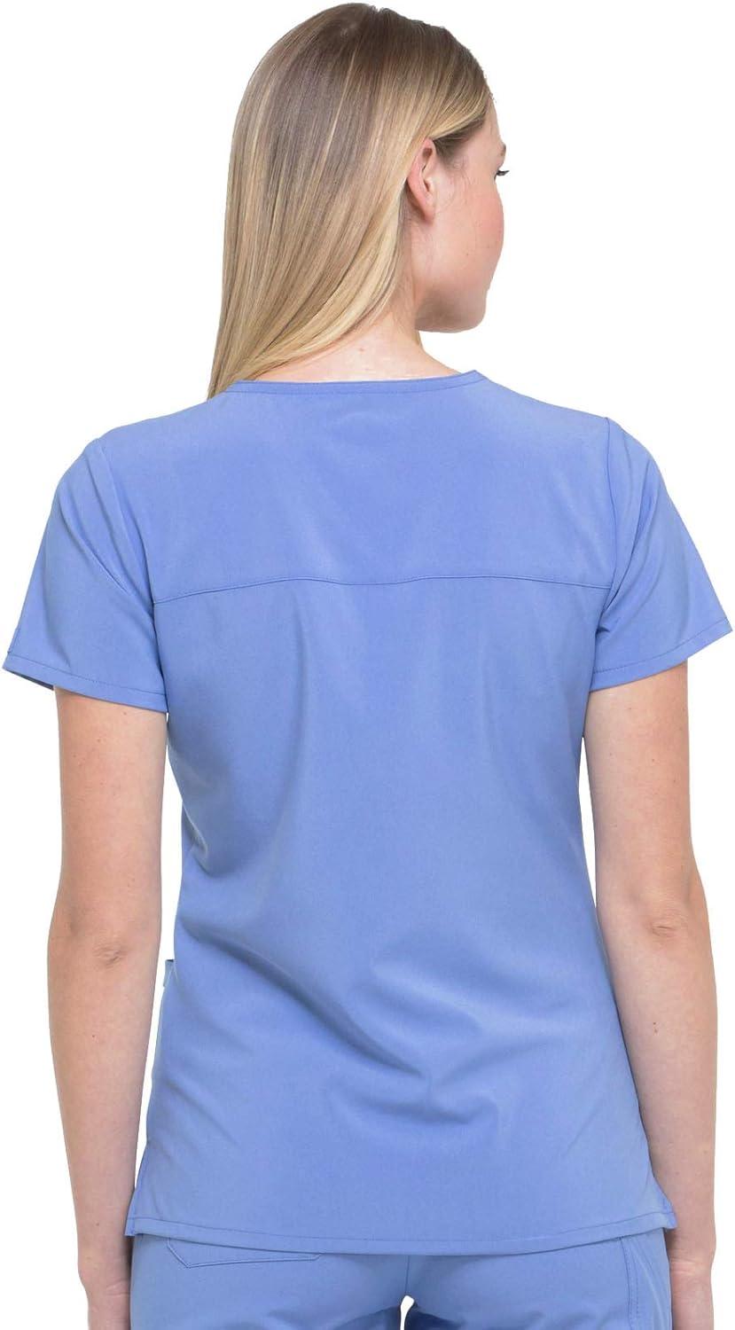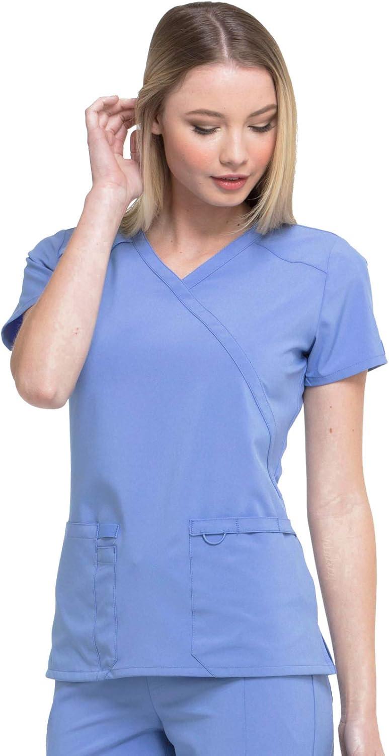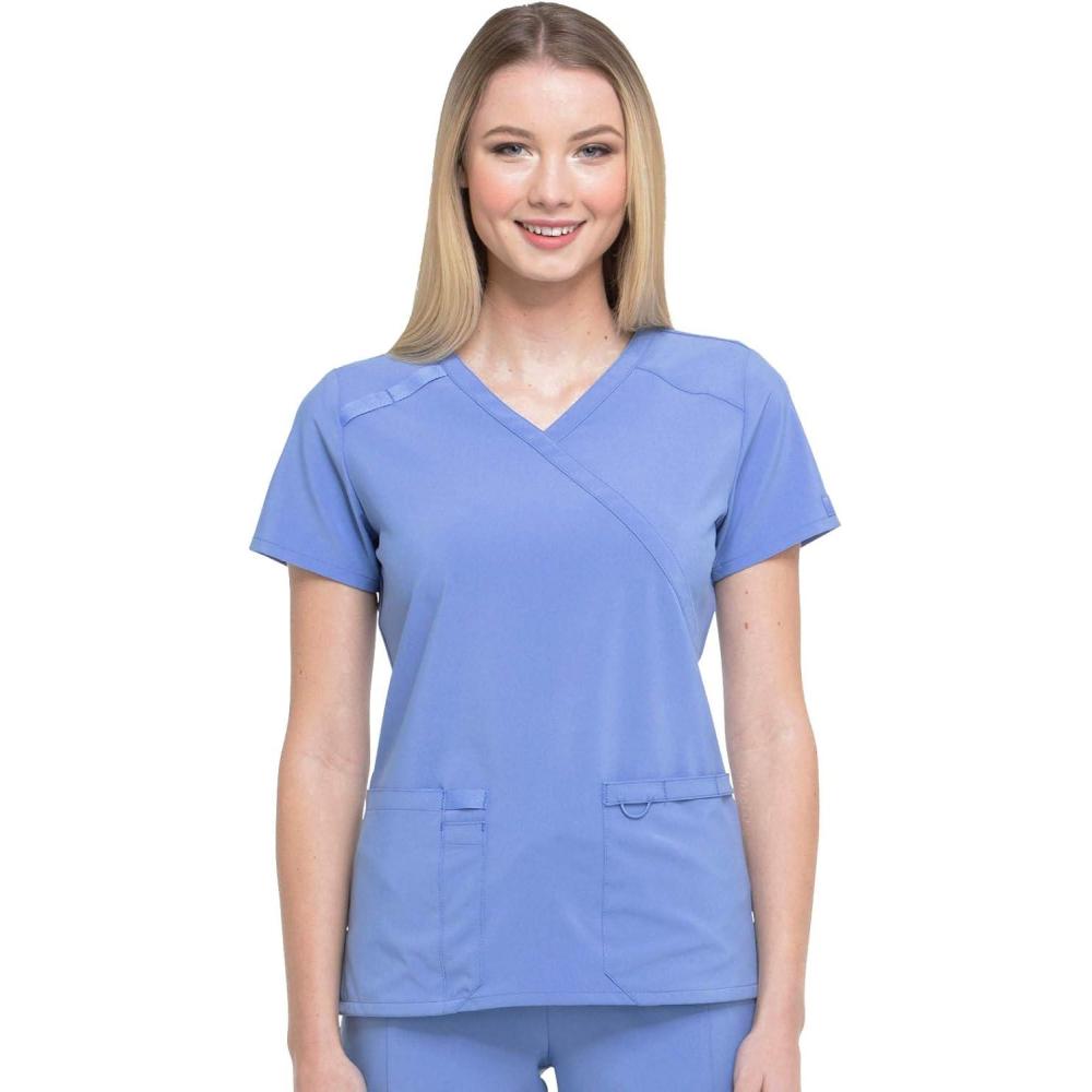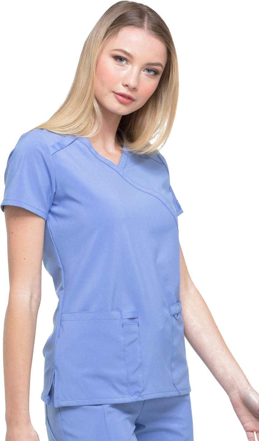Dickies EDS Essentials, Mock Wrap Top Scrubs for Women with Four-Way Stretch and Moisture Wicking DK625(Ciel)