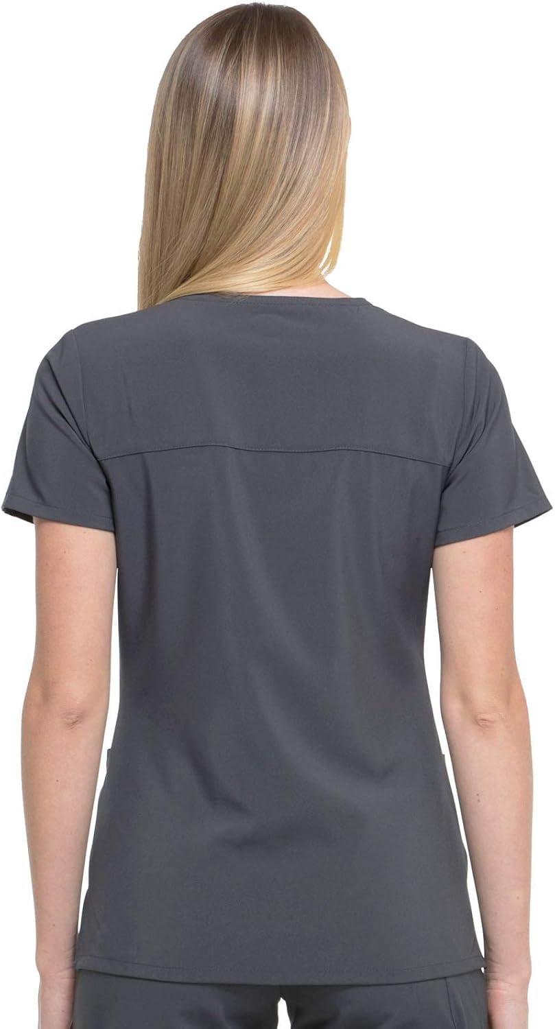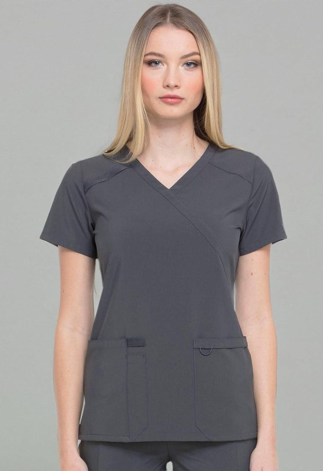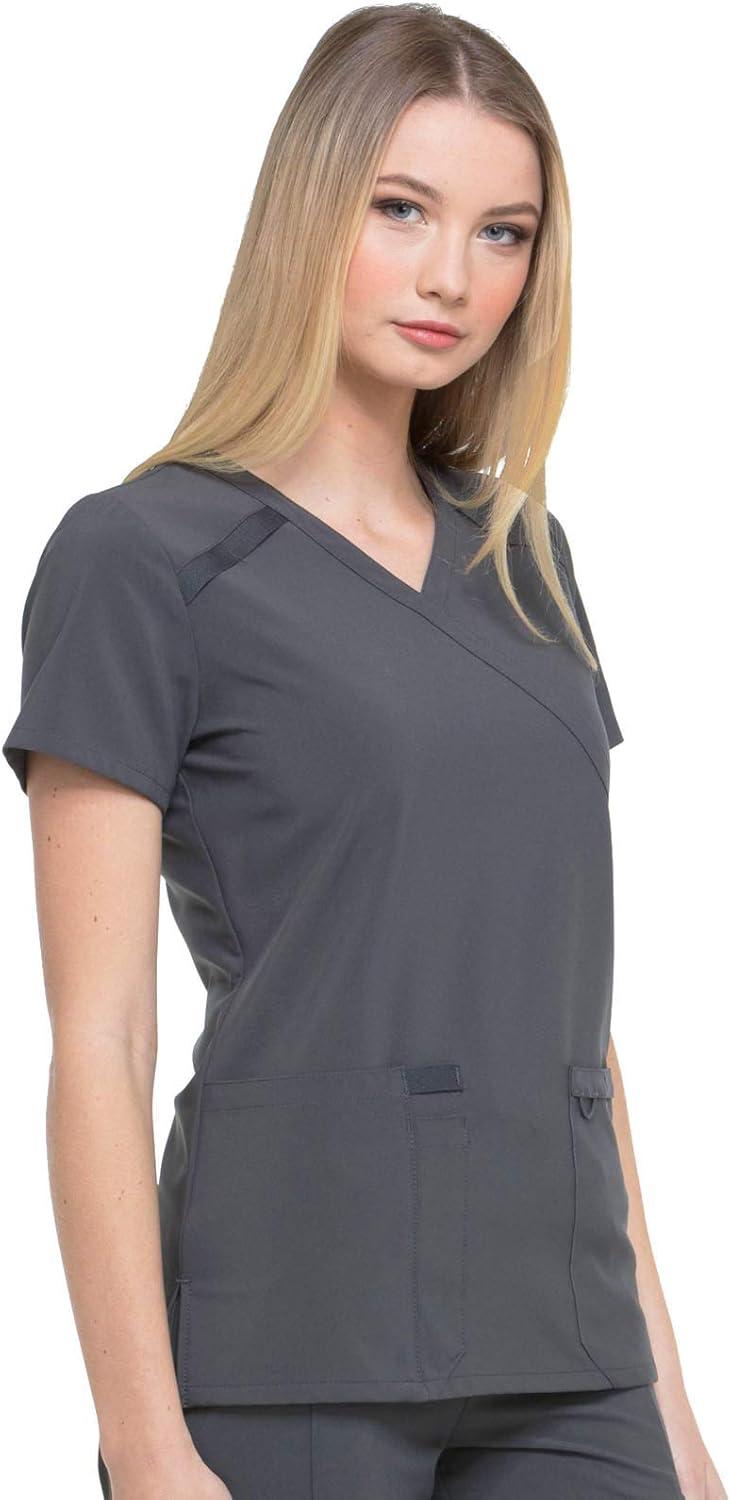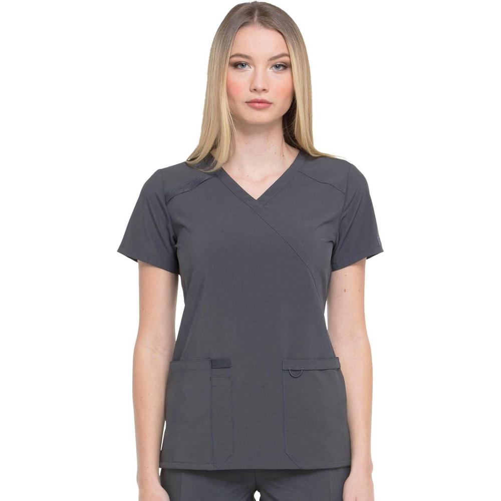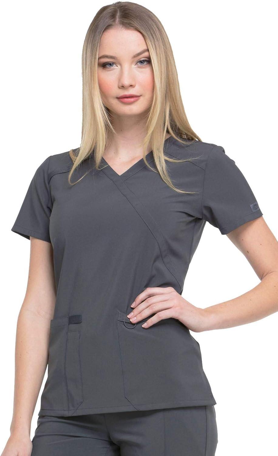 Dickies EDS Essentials, Mock Wrap Top Scrubs for Women with Four-Way Stretch and Moisture Wicking DK625(Pewter)