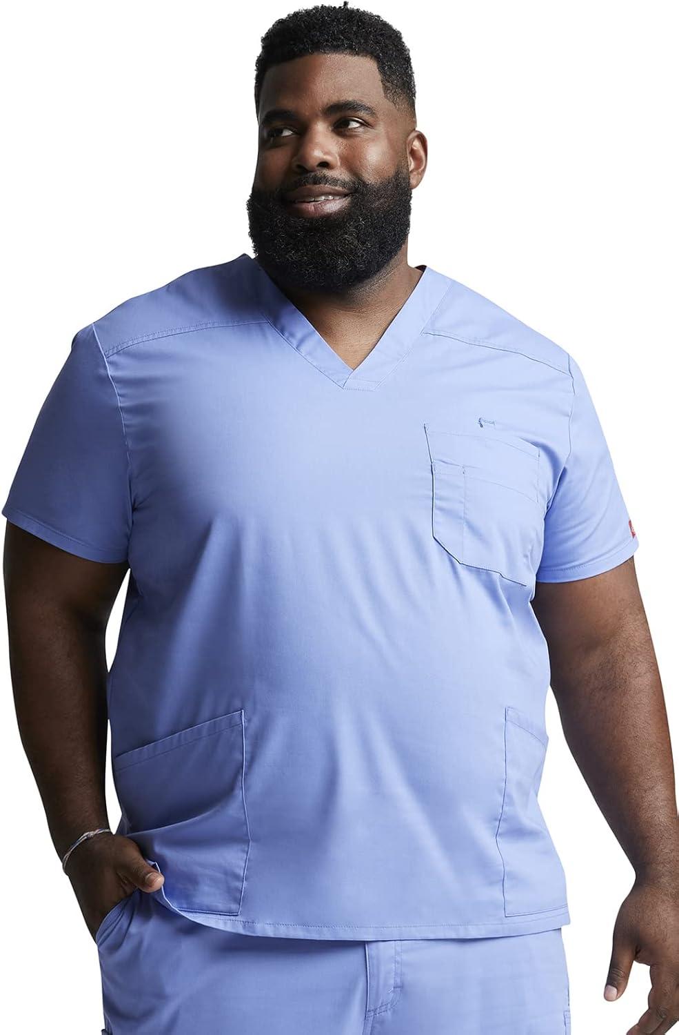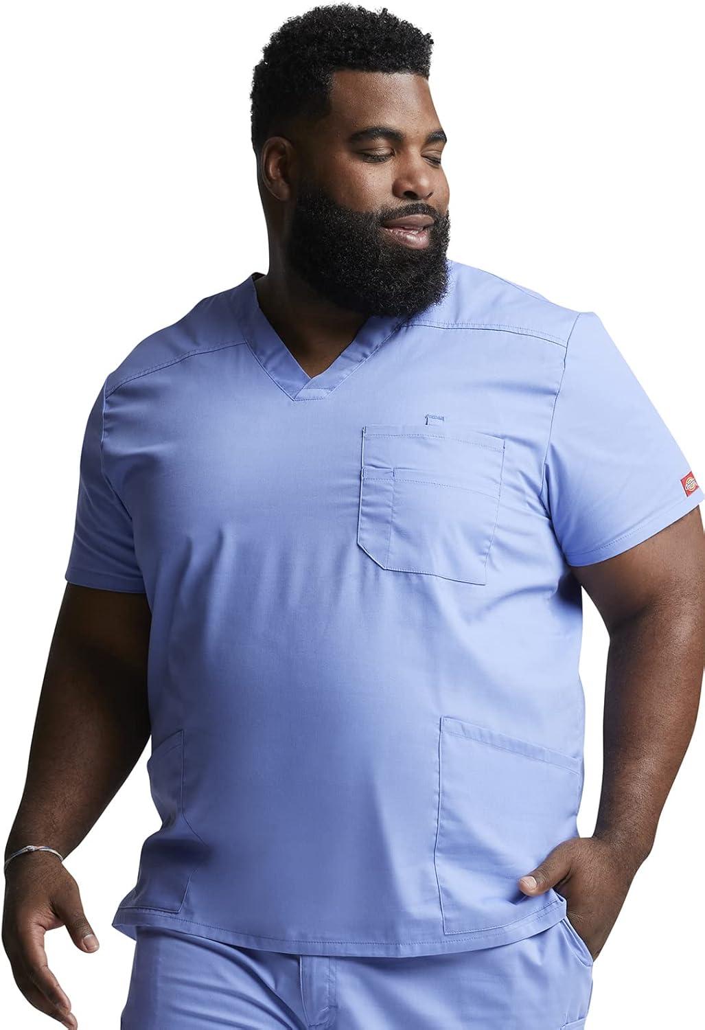 Dickies EDS Signature Scrubs for Women and Scrubs for Men, Unisex One Pocket V-Neck Top in Soft Brushed Poplin 83706(Ceil Blue)