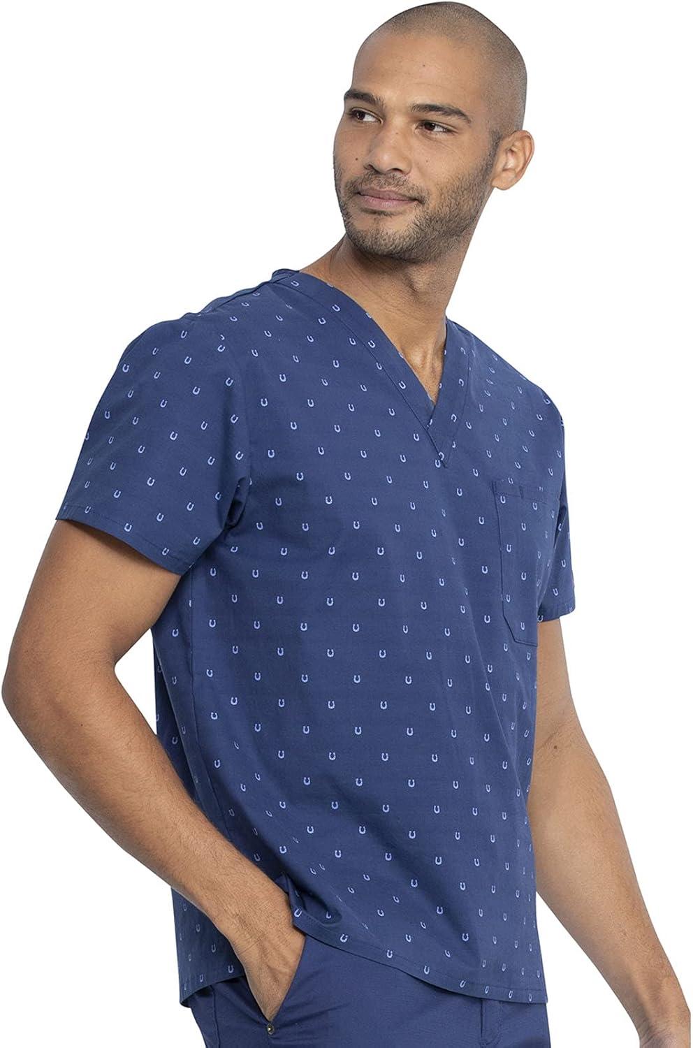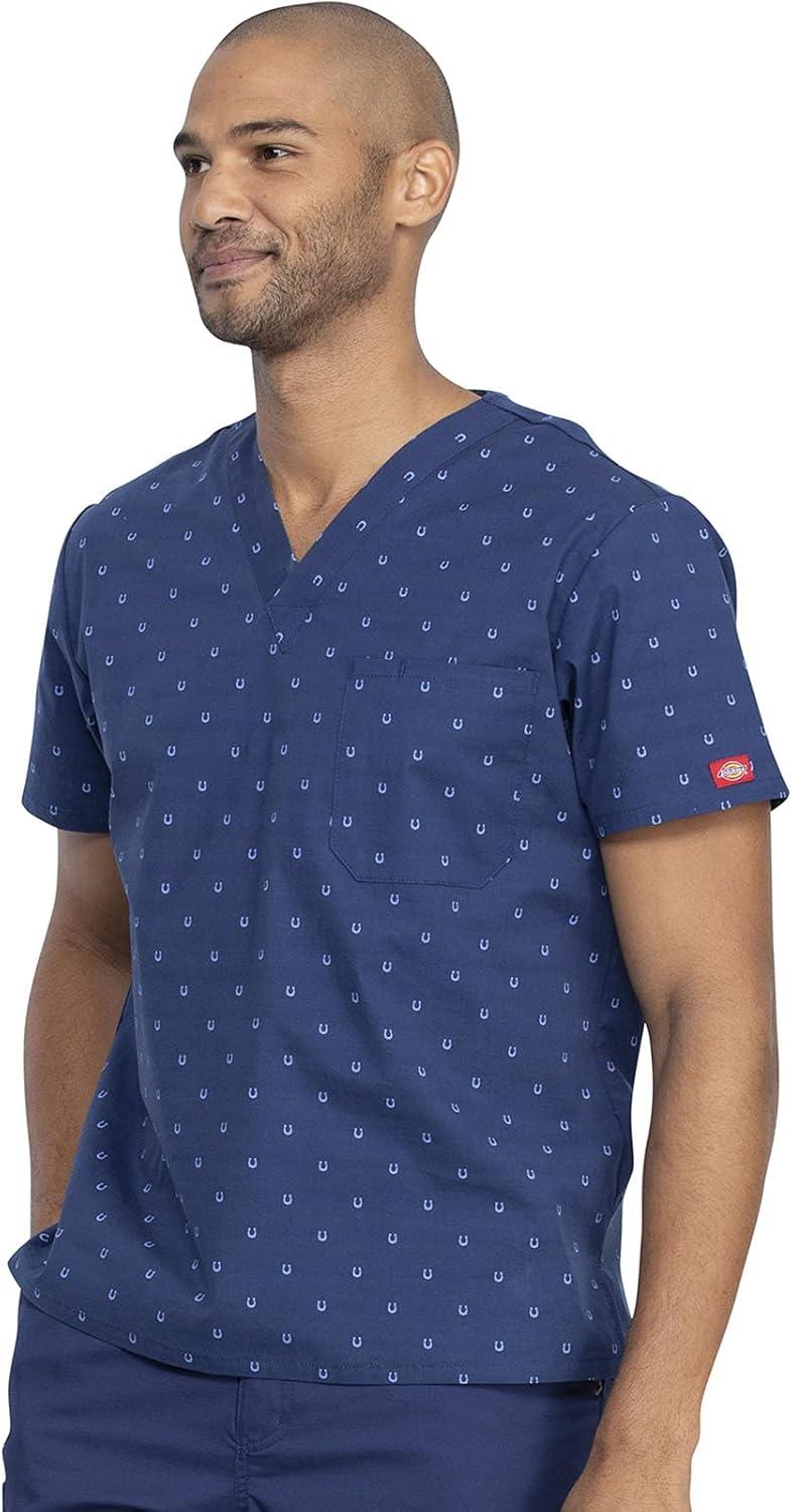 Dickies EDS Signature Scrubs for Women and Scrubs for Men, Unisex One Pocket V-Neck Top in Soft Brushed Poplin 83706(Hey There Sport)