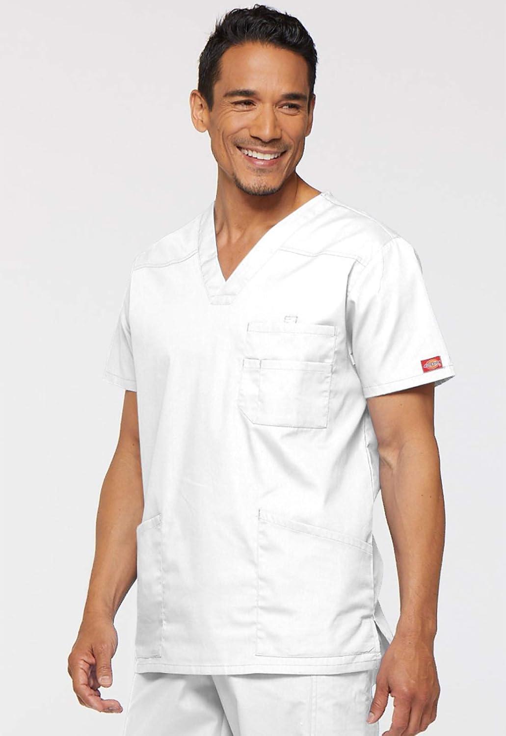 Dickies EDS Signature Scrubs for Women and Scrubs for Men, Unisex One Pocket V-Neck Top in Soft Brushed Poplin 83706(White)