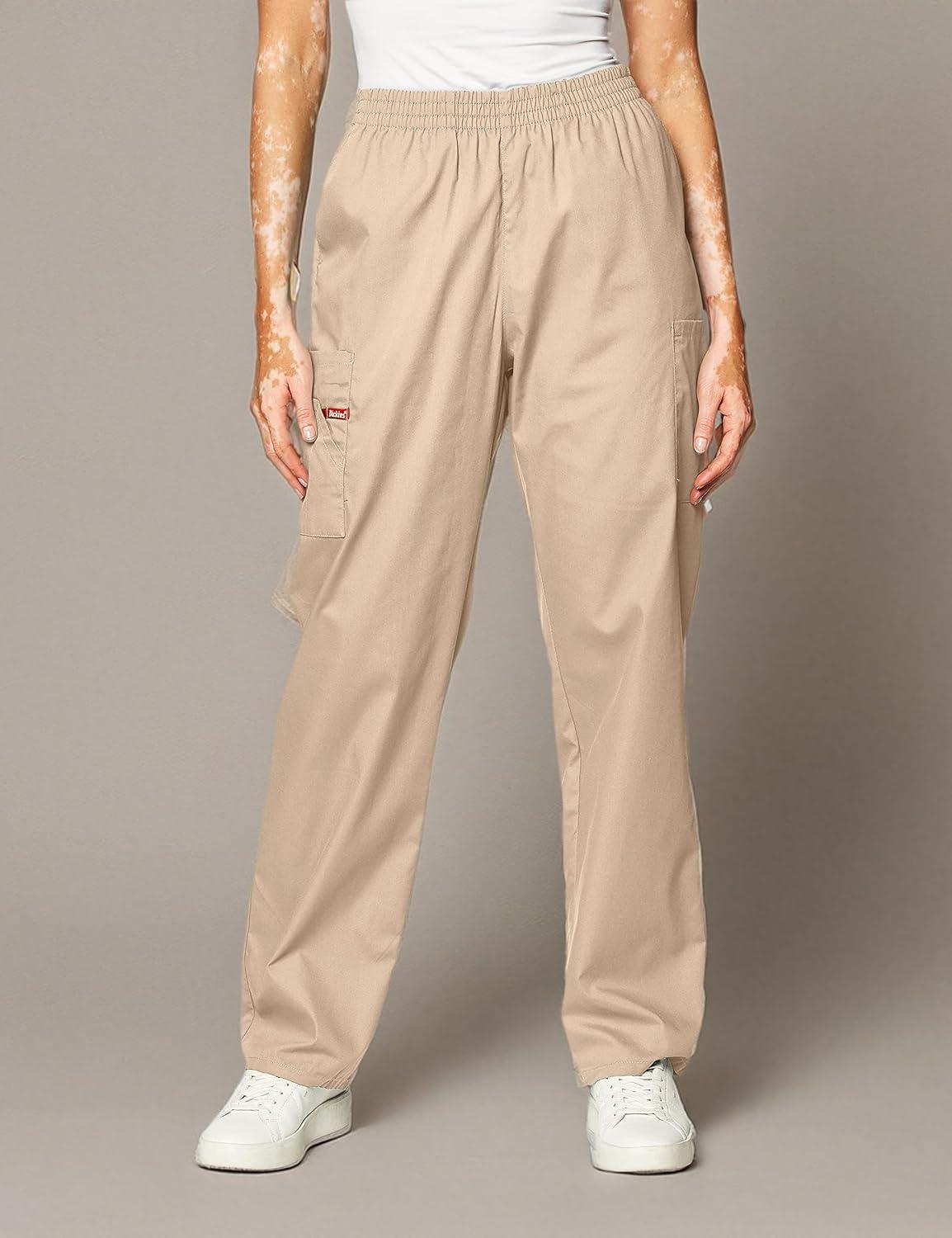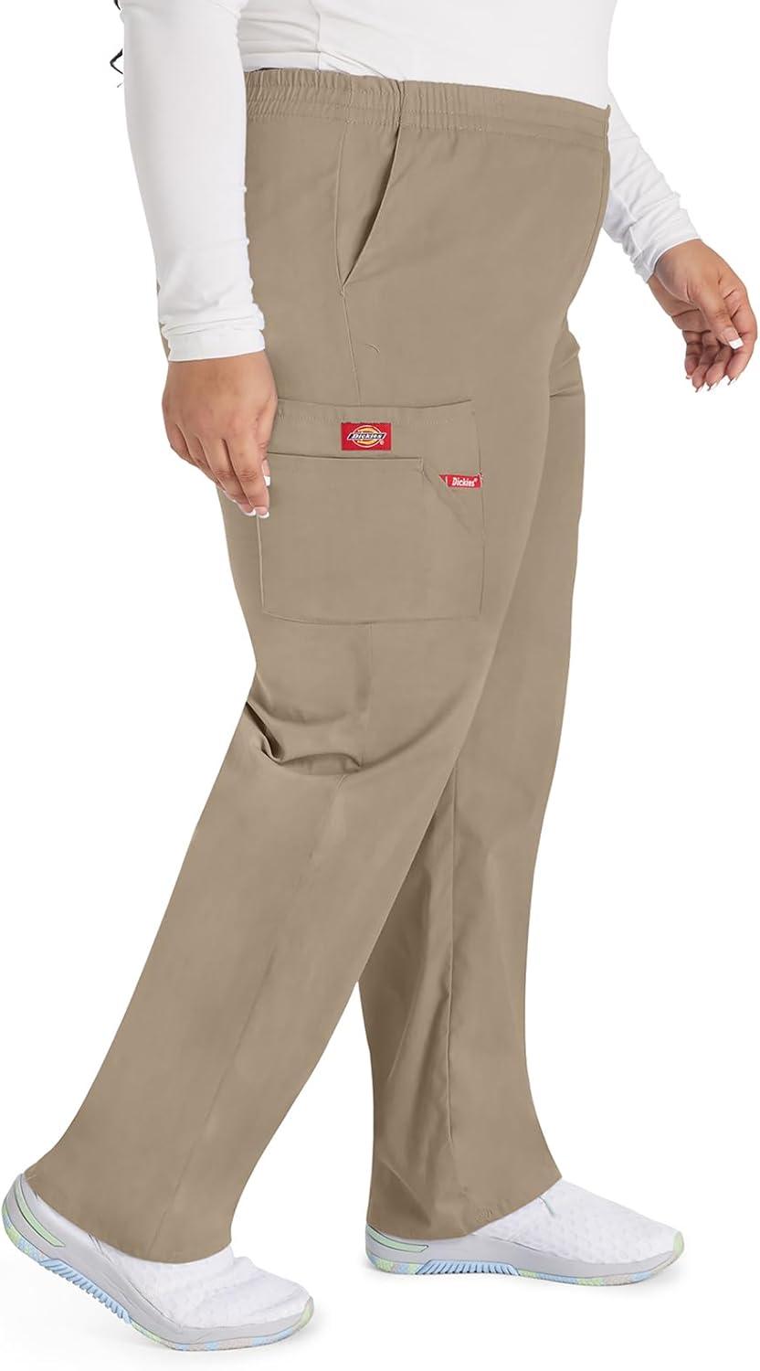 Dickies EDS Signature Scrubs for Women, Elastic Waist Pull-On Cargo Pants for Women in Soft Brushed Poplin 86106(Dark Khaki)