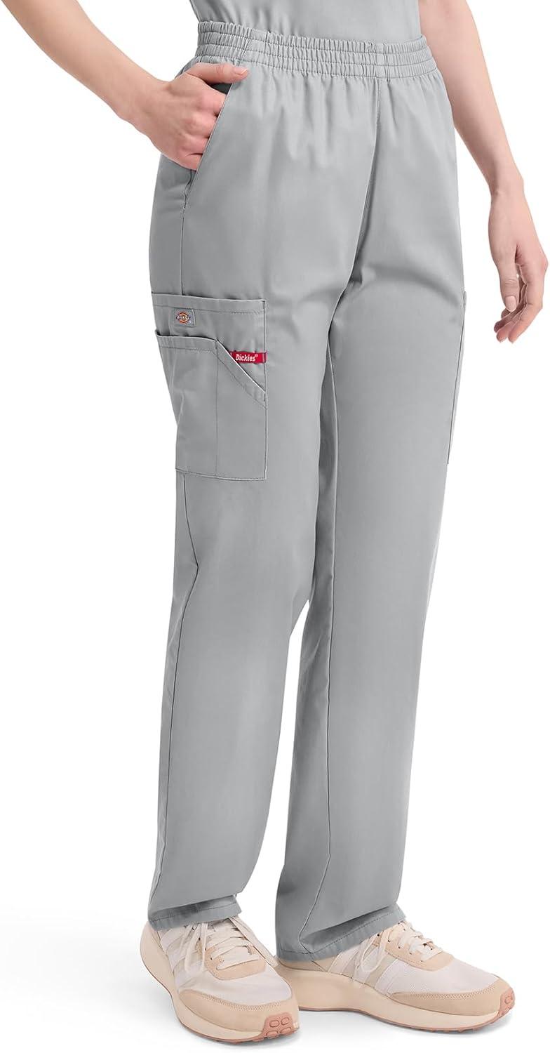 Dickies EDS Signature Scrubs for Women, Elastic Waist Pull-On Cargo Pants for Women in Soft Brushed Poplin 86106(Grey)
