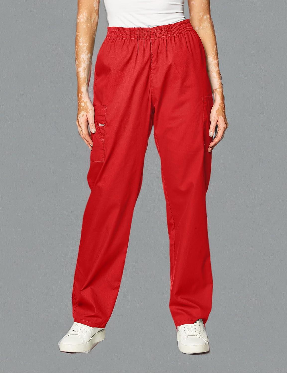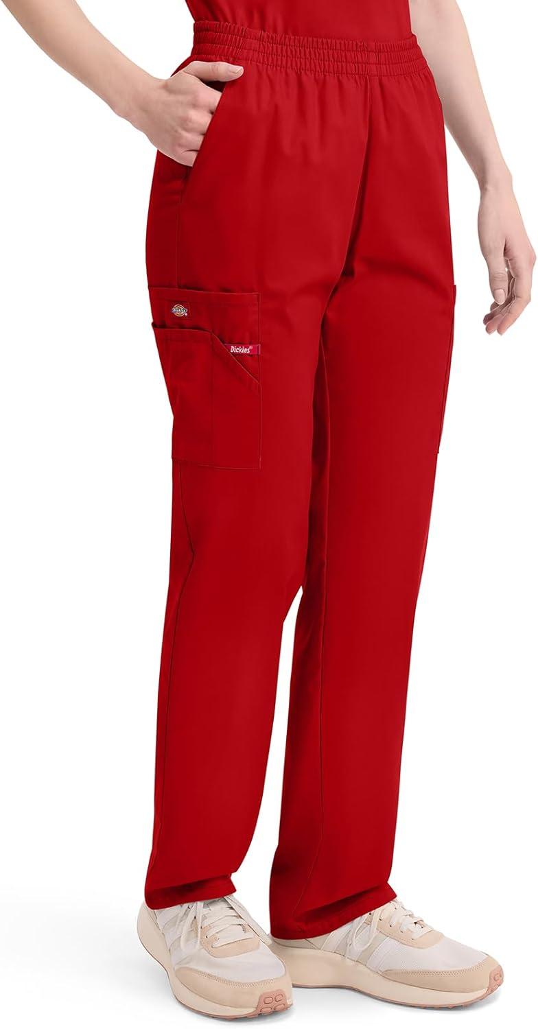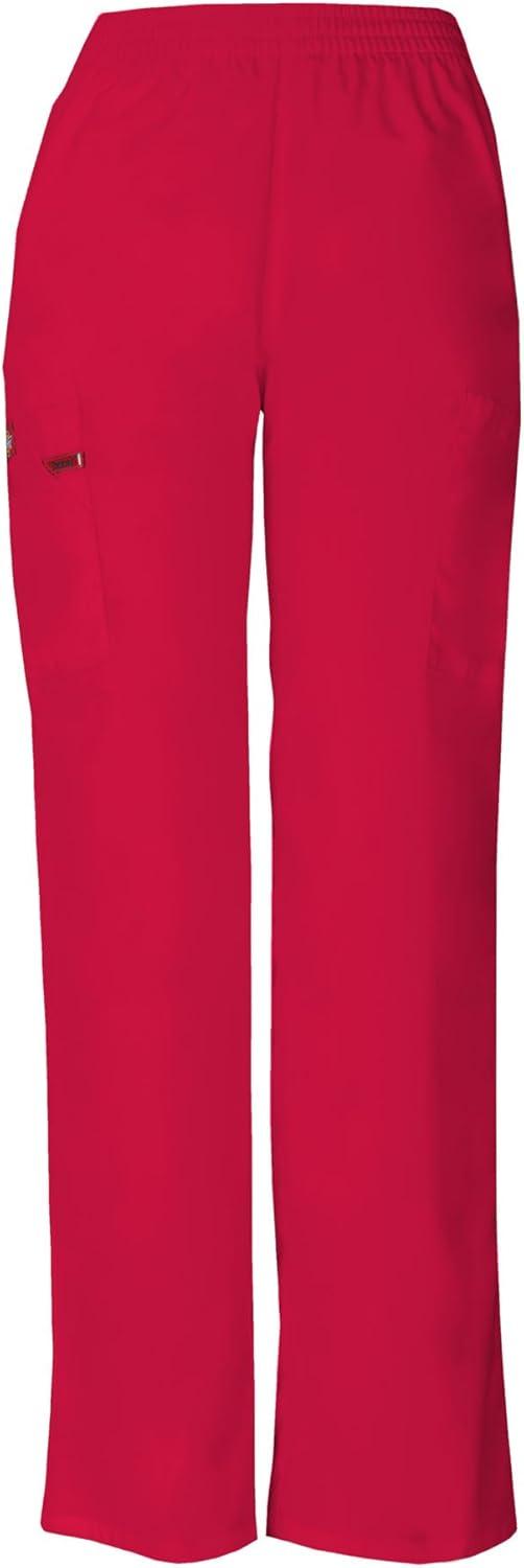 Dickies EDS Signature Scrubs for Women, Elastic Waist Pull-On Cargo Pants for Women in Soft Brushed Poplin 86106(Red)