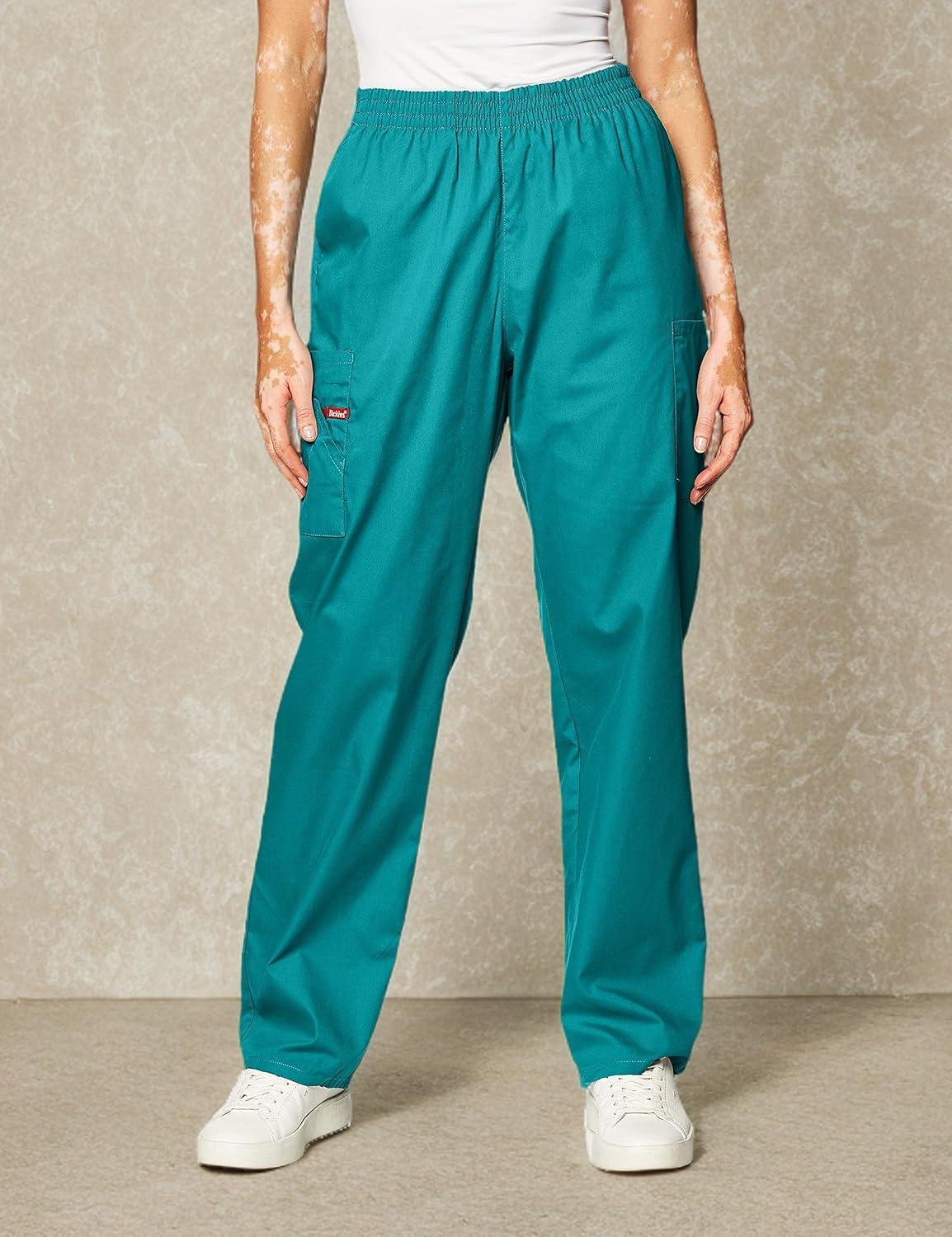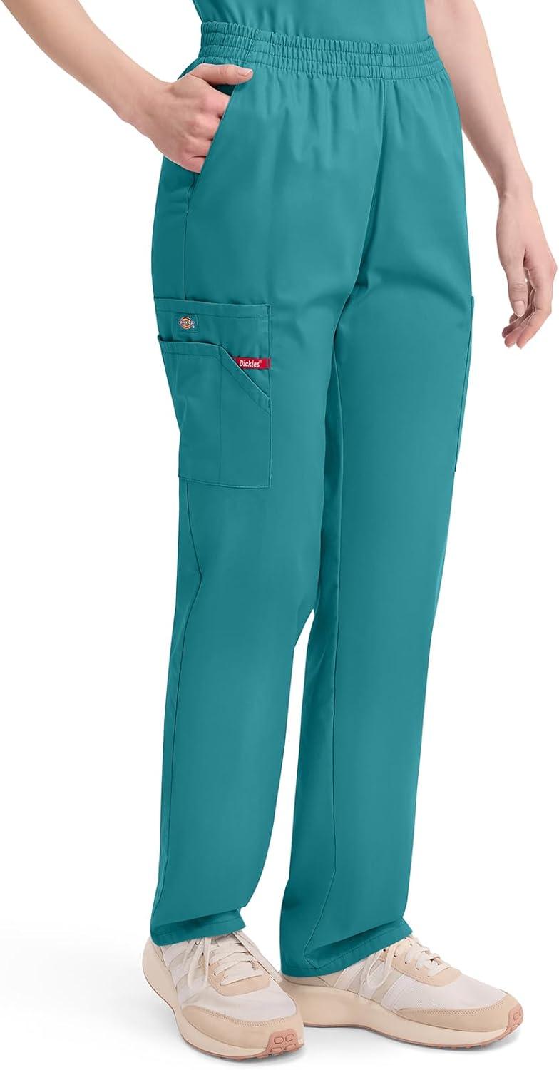 Dickies EDS Signature Scrubs for Women, Elastic Waist Pull-On Cargo Pants for Women in Soft Brushed Poplin 86106(Teal Blue)