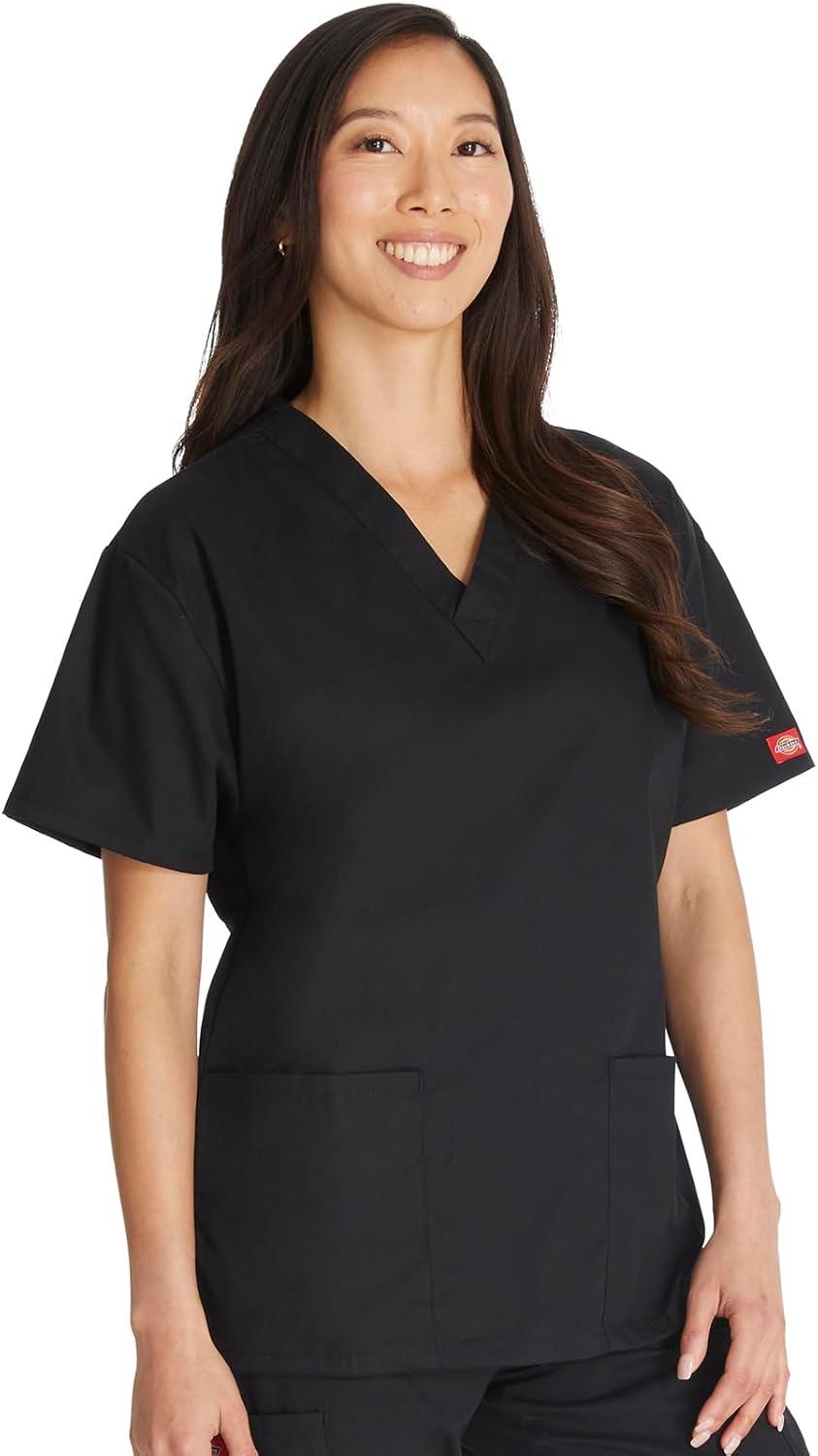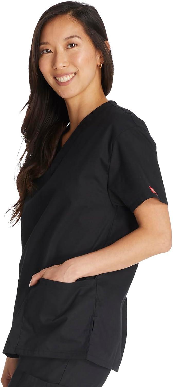 Dickies EDS Signature Scrubs for Women, V-Neck Womens Tops in Soft Brushed Poplin 86706(Black)