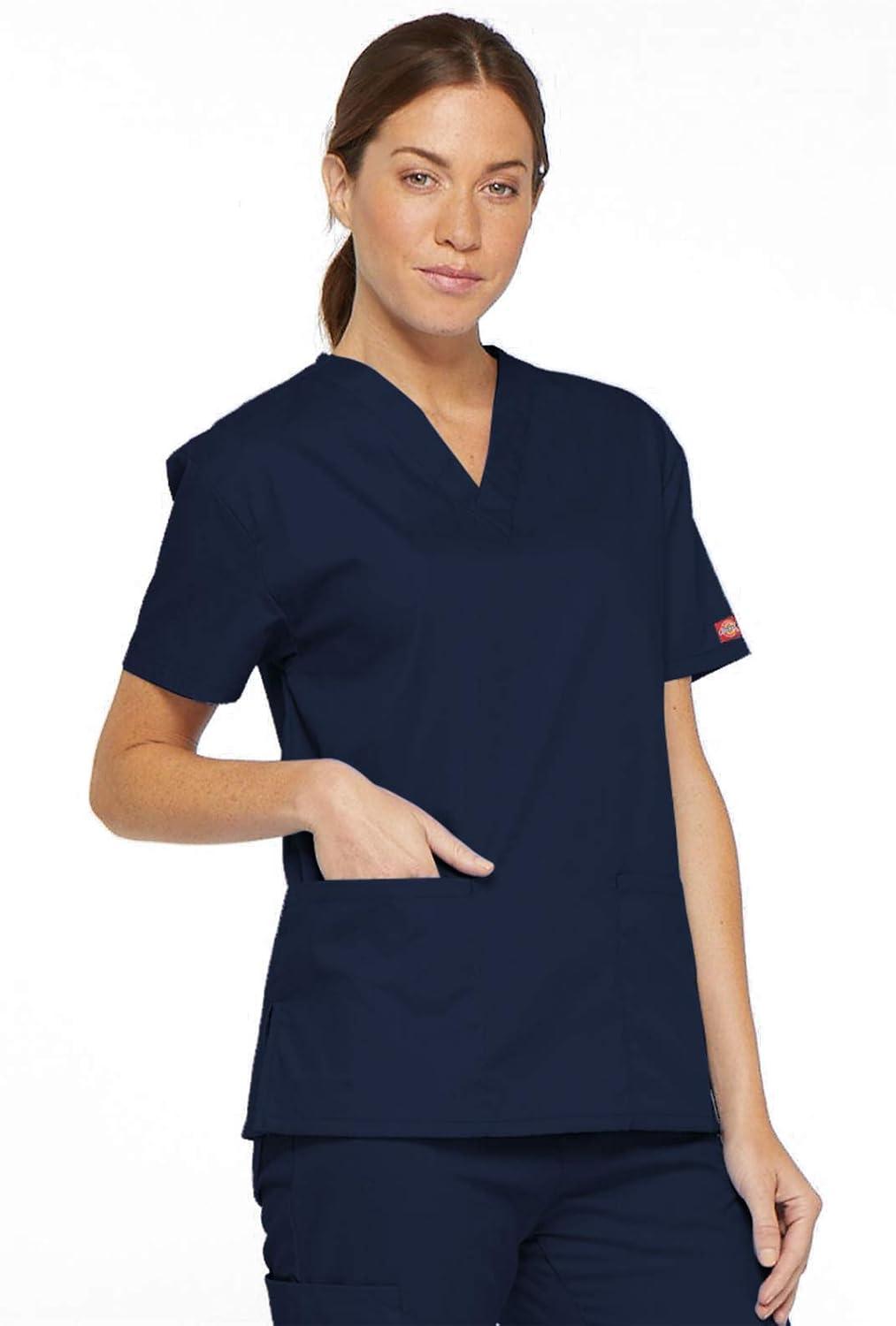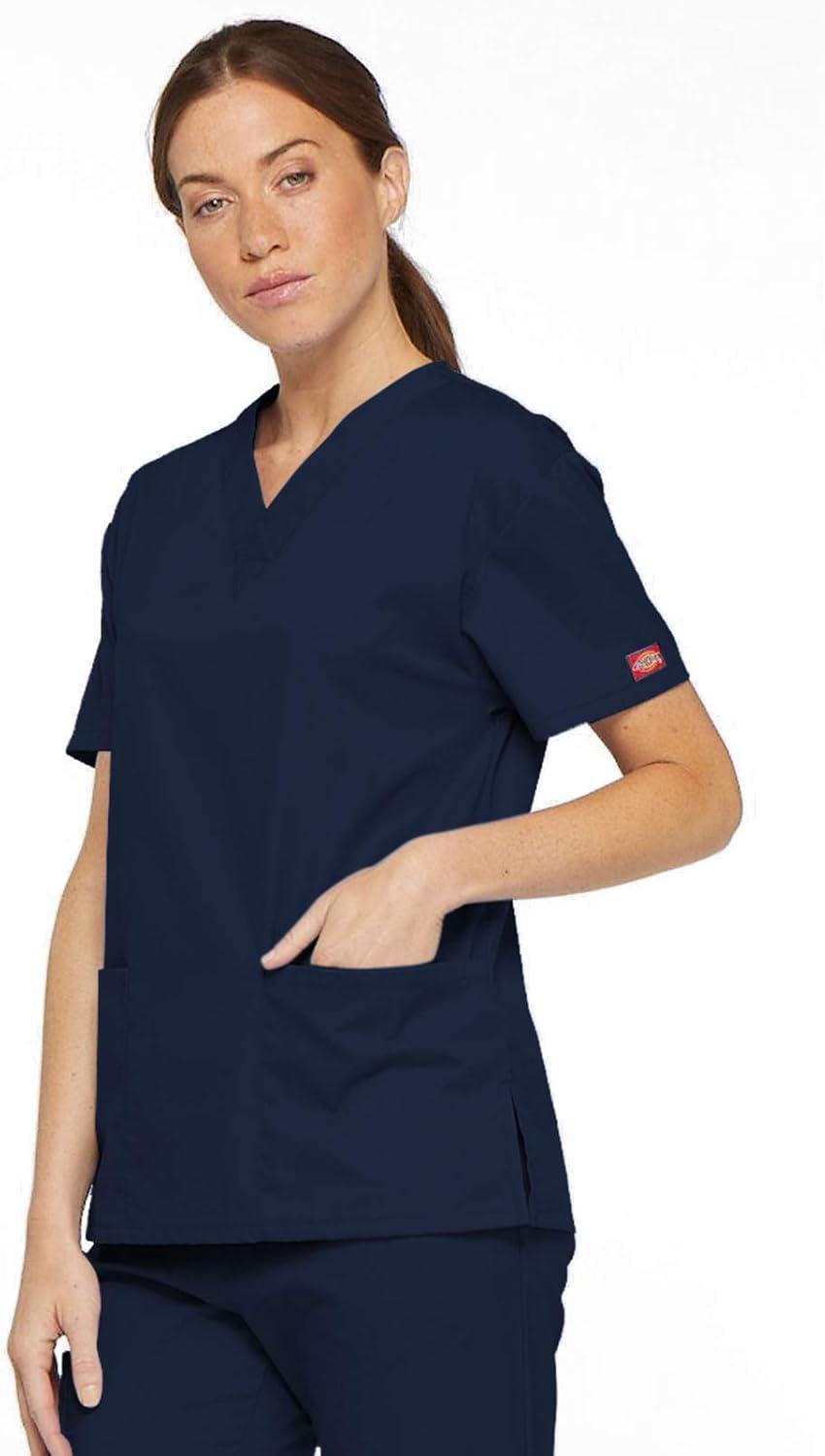 Dickies EDS Signature Scrubs for Women, V-Neck Womens Tops in Soft Brushed Poplin 86706(Navy)
