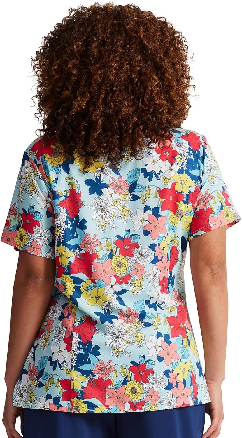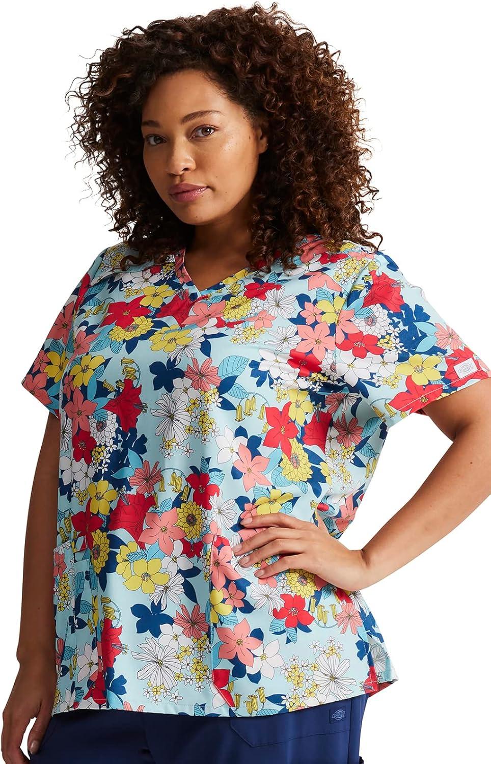 Dickies EDS Women Scrubs Top V-Neck DK700(Blooms So Retro)