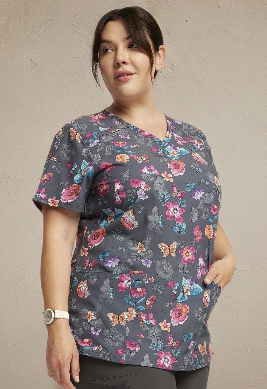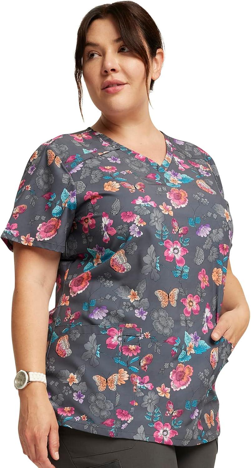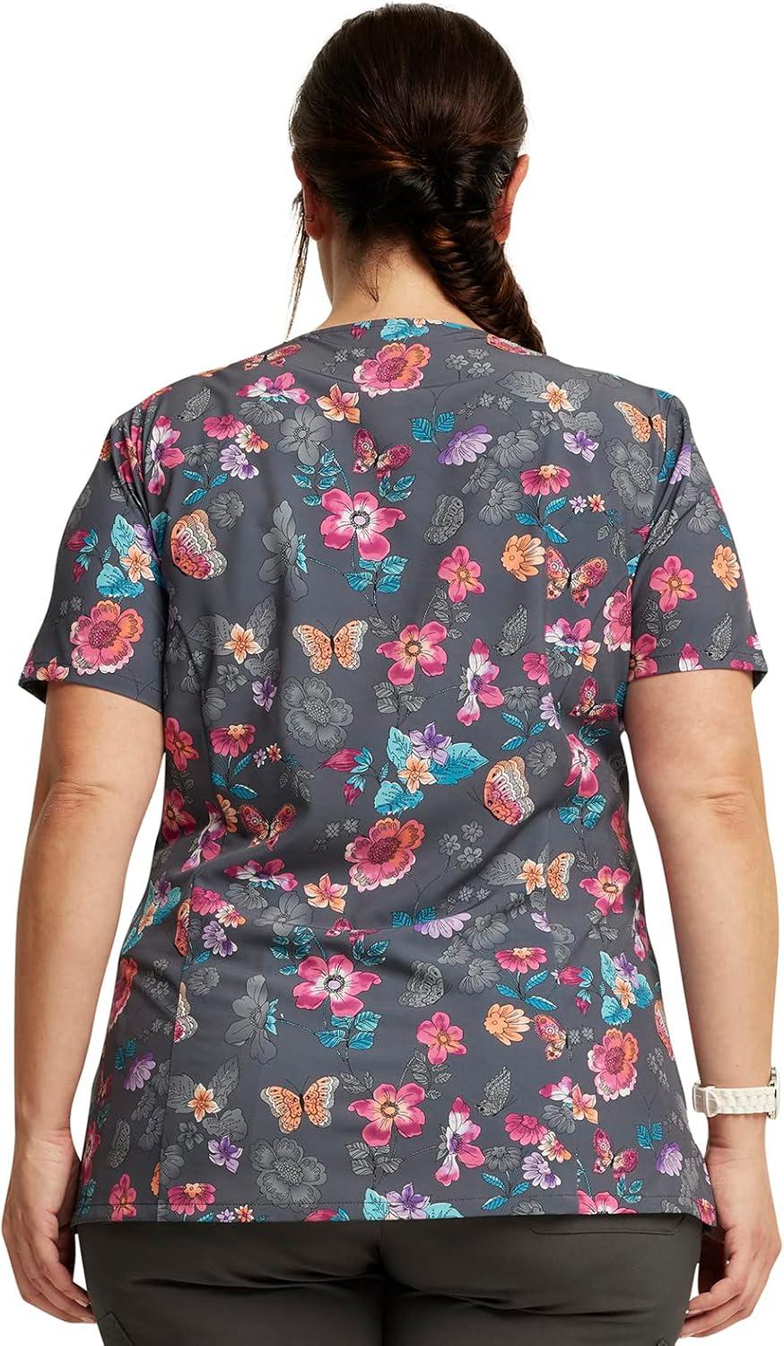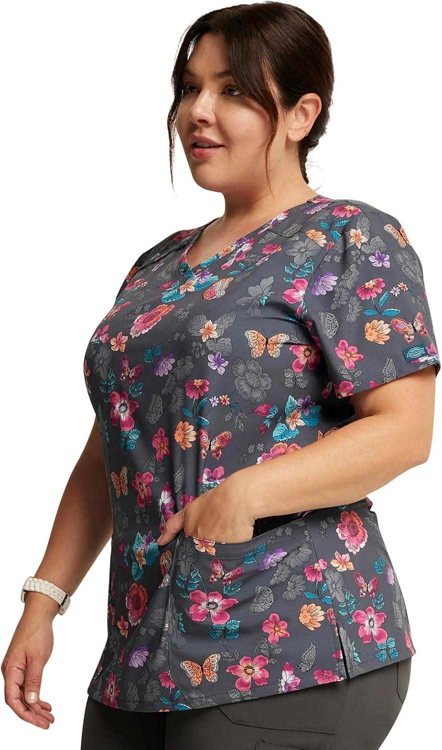 Dickies EDS Women Scrubs Top V-Neck DK700(Butterflies Abloom)