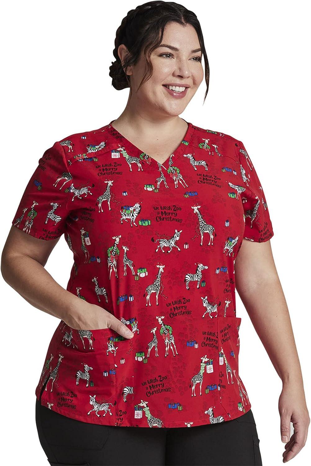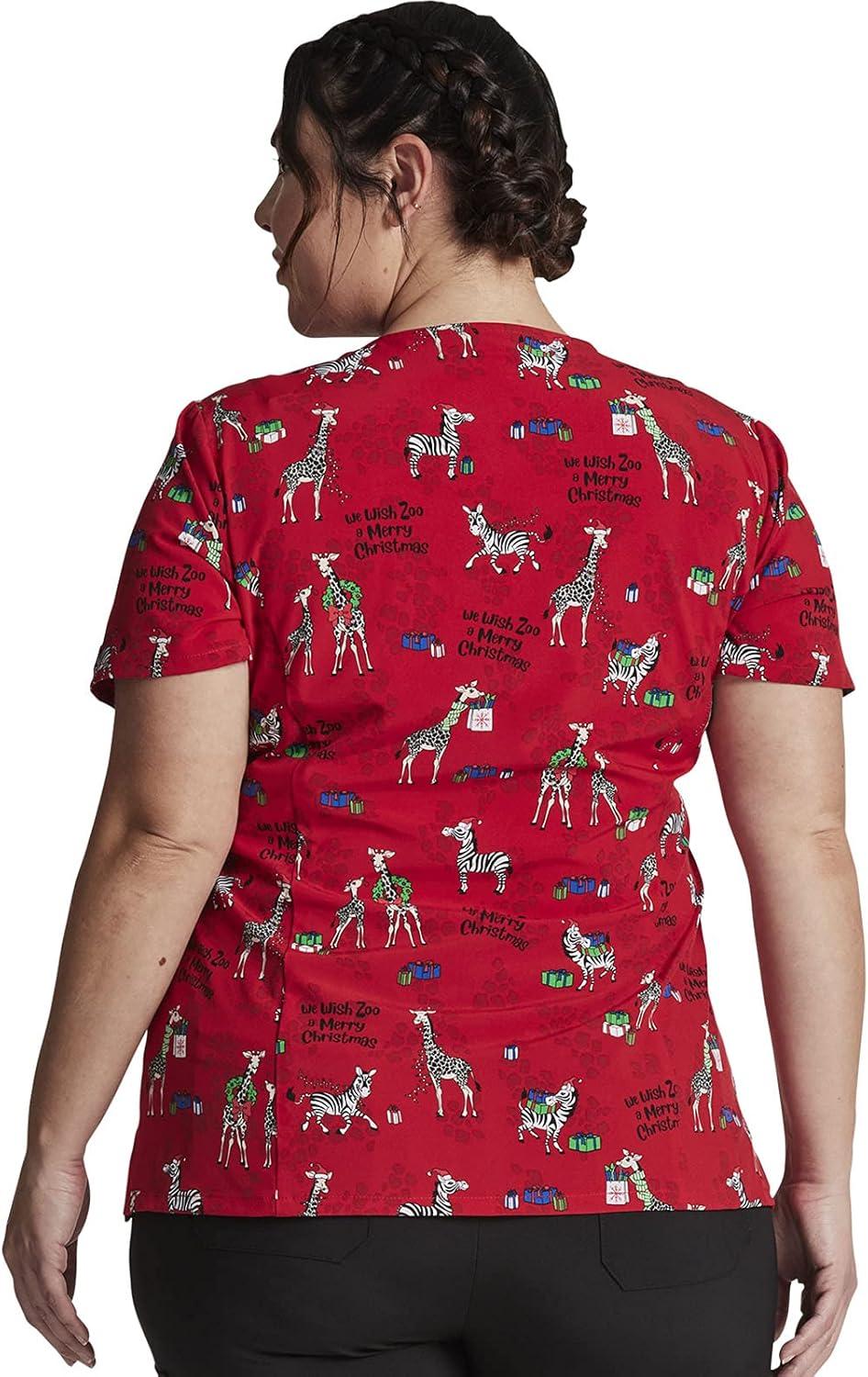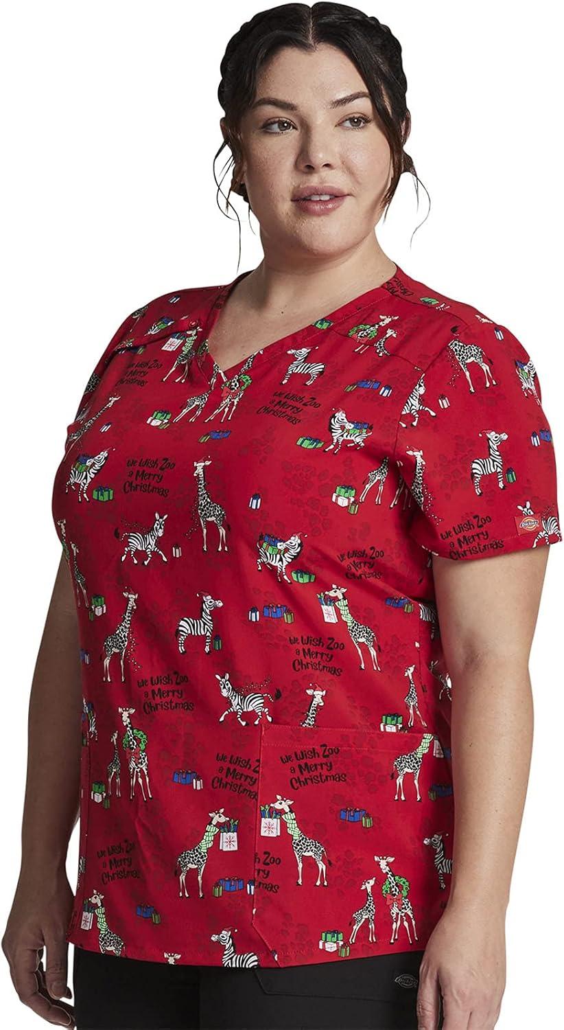 Dickies EDS Women Scrubs Top V-Neck DK700(Wish Zoo a Merry Christmas)