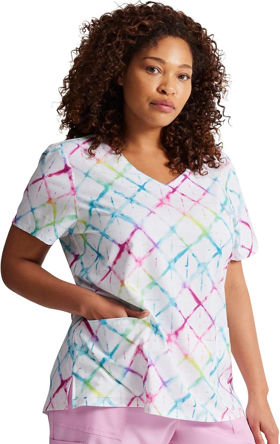 Dickies EDS Women Scrubs Top V-Neck Print DK852(Groovy Grid)