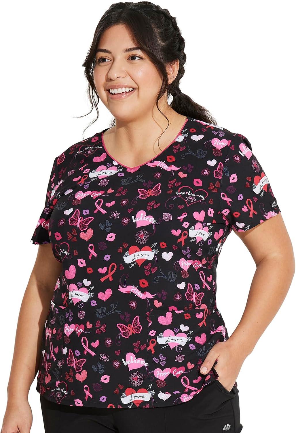 Dickies EDS Women Scrubs Top V-Neck Print DK852(Hope Heals)