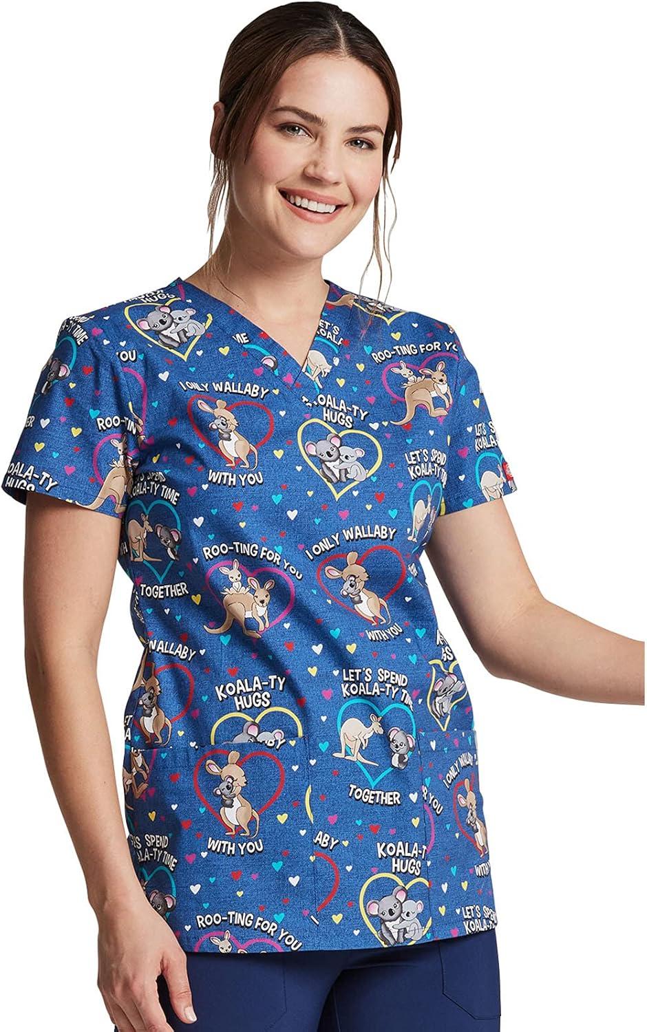 Dickies EDS Women Scrubs Top V-Neck Print DK876(Roo-ting for You)