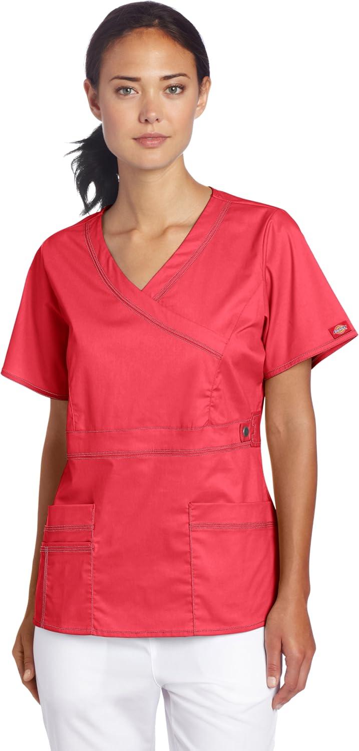 Dickies Gen Flex Women Scrubs Top Mock Wrap 817355.(Crimson)