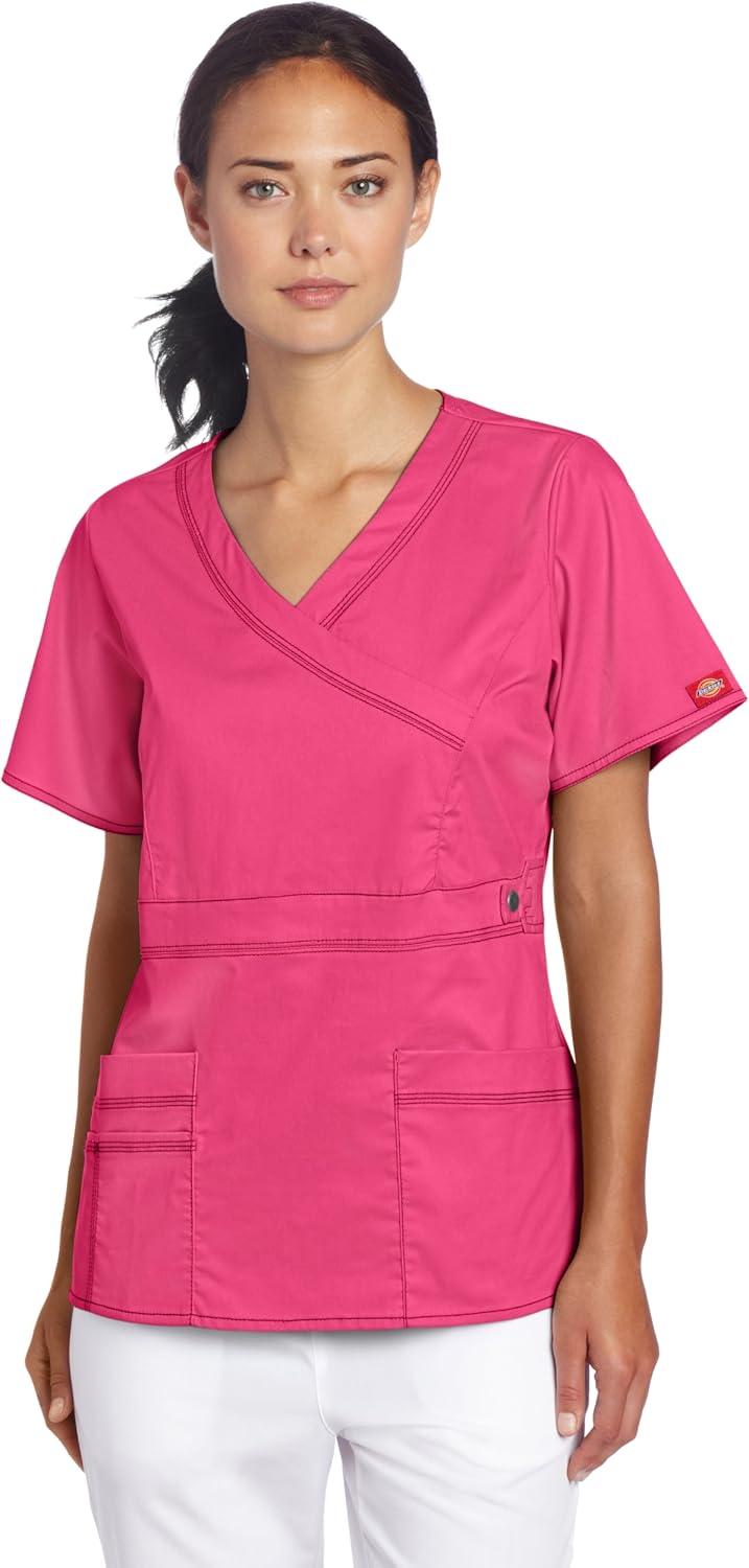 Dickies Gen Flex Women Scrubs Top Mock Wrap 817355.(Hot Pink)
