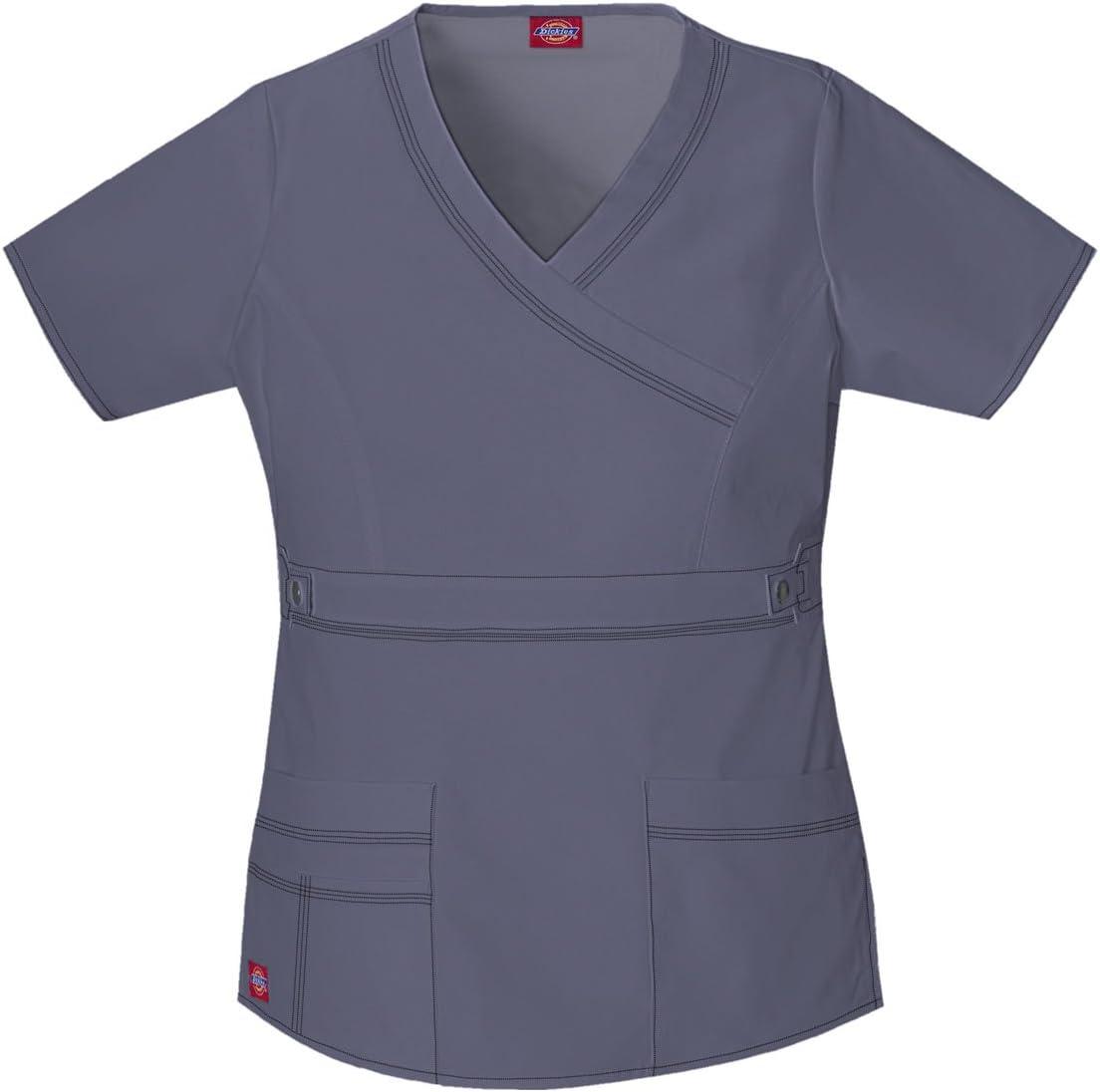 Dickies Gen Flex Women Scrubs Top Mock Wrap 817355.(Light Pewter)