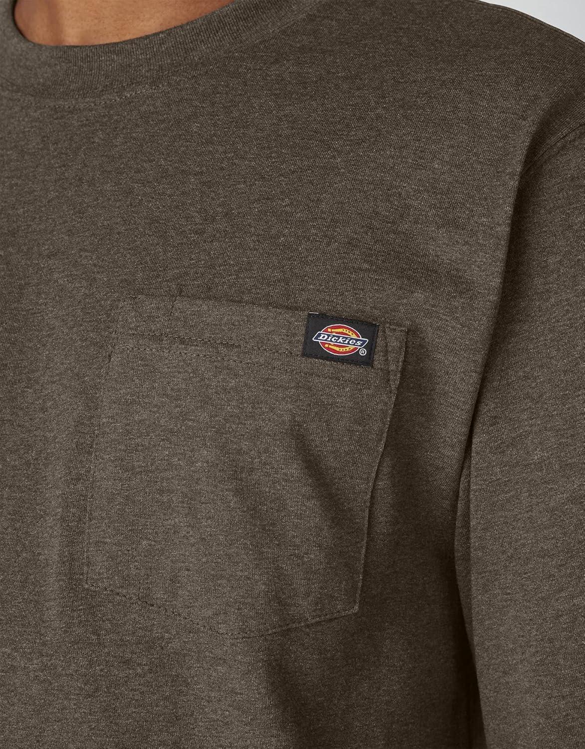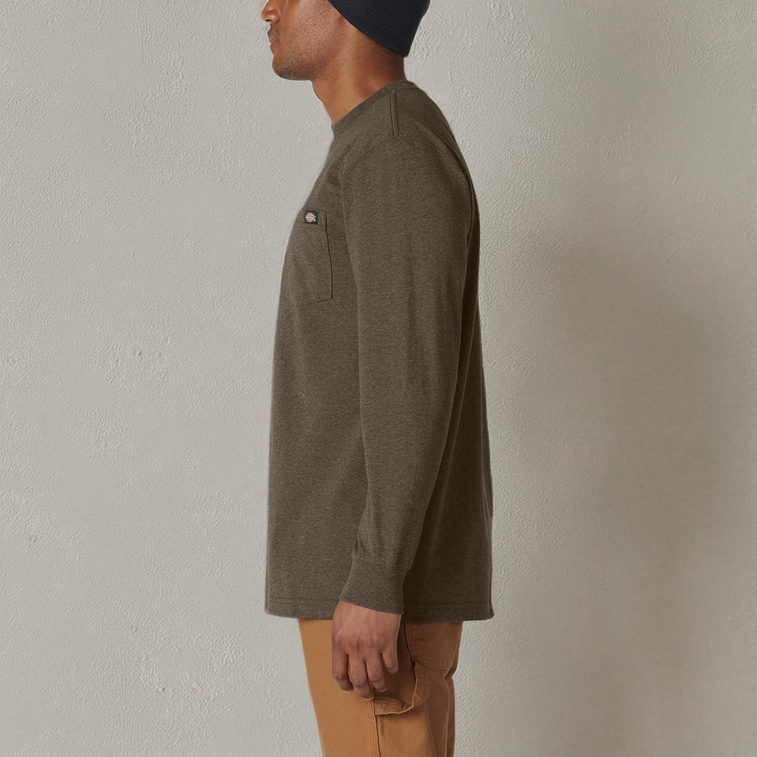 Dickies Men’s Big and Tall Long Sleeve Heavyweight Crew Neck(Chocolate Brown Single Dye Heather)