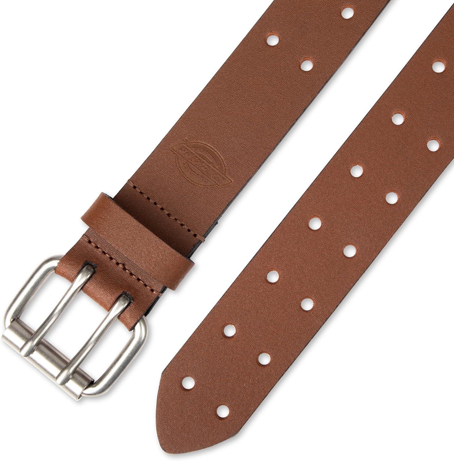 Dickies Men’s Double Prong Leather Work Belt – Fully Adjustable, Regular & Big and Tall Sizes(Brown)