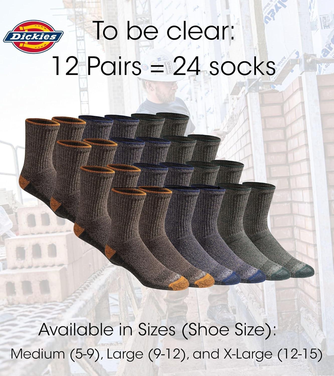 Dickies Men's Dri-tech Moisture Control Mid-crew Comfort Length Socks, Available in M-xl (6, 12 Pairs)(Comfort Length Tipped (12 Pairs))