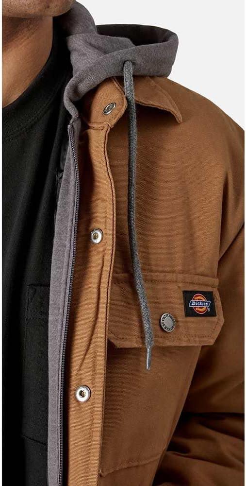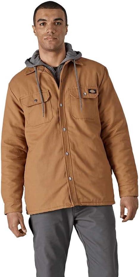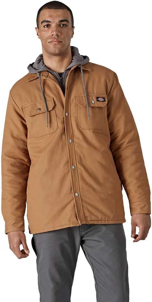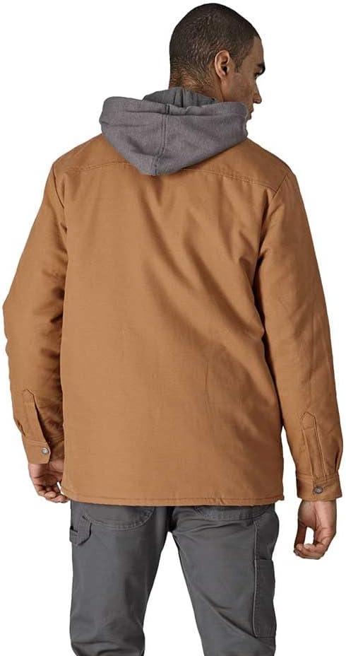 Dickies mens Fleece Hooded Duck Shirt Jacket With Hydroshield(Brown Duck)
