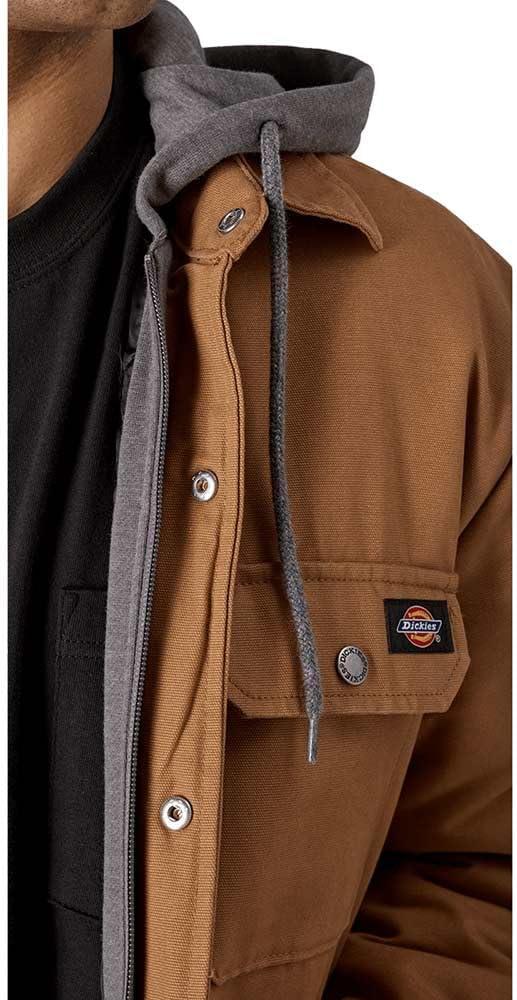 imageDickies mens Fleece Hooded Duck Shirt Jacket With HydroshieldBrown Duck