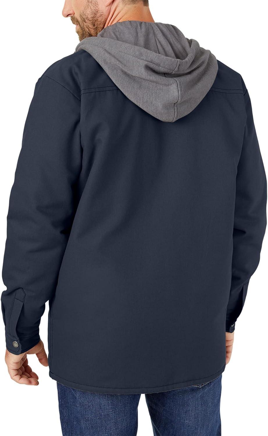 Dickies mens Fleece Hooded Duck Shirt Jacket With Hydroshield(Dark Navy)