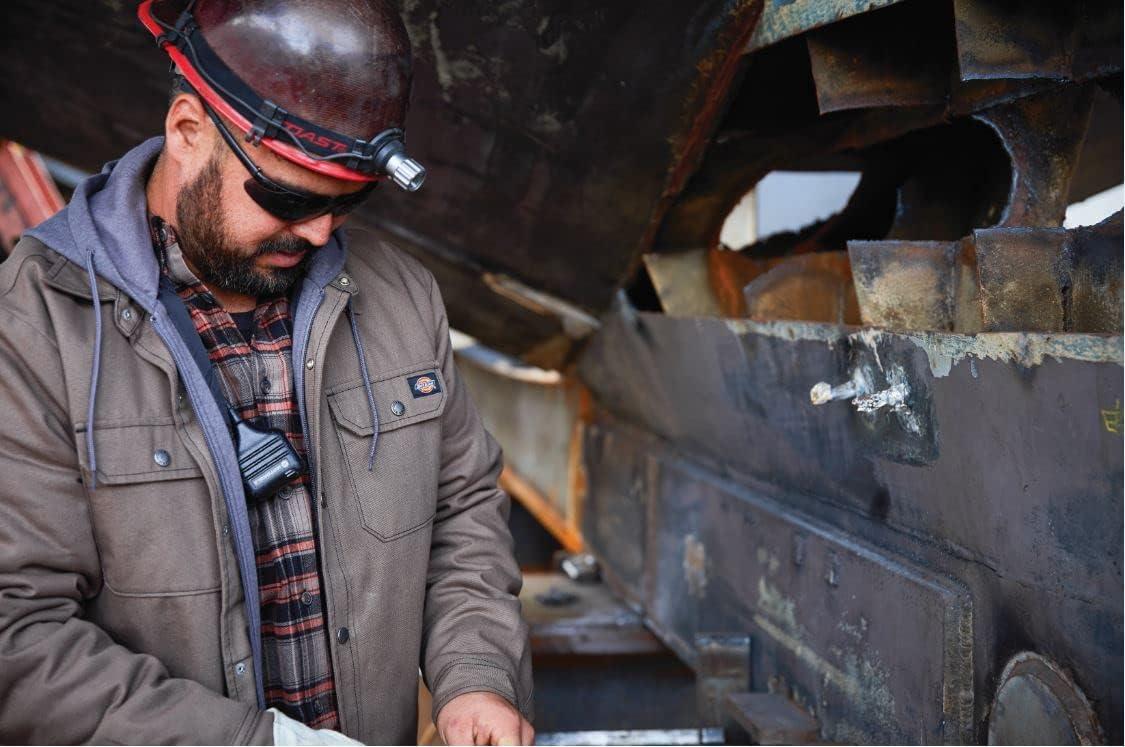 Dickies’ Fleece Hooded Duck Shirt Jacket with Hydroshield is the essential layering piece when it’s too cold for a shirt and too warm for a coat. The Hydroshield innovation makes this jacket completely water repellent, while the jersey lining adds a shield of warmth. The durability of the fabrication adds longevity and value to the jacket, so you know it will go the distance. Plus, Dickies partnership with the Better Cotton Initiative ensures that the cotton used to construct this shirt jacket was sustainably sourced. Hand warming pockets and convenient chest pockets provide high utility in this low maintenance jacket.