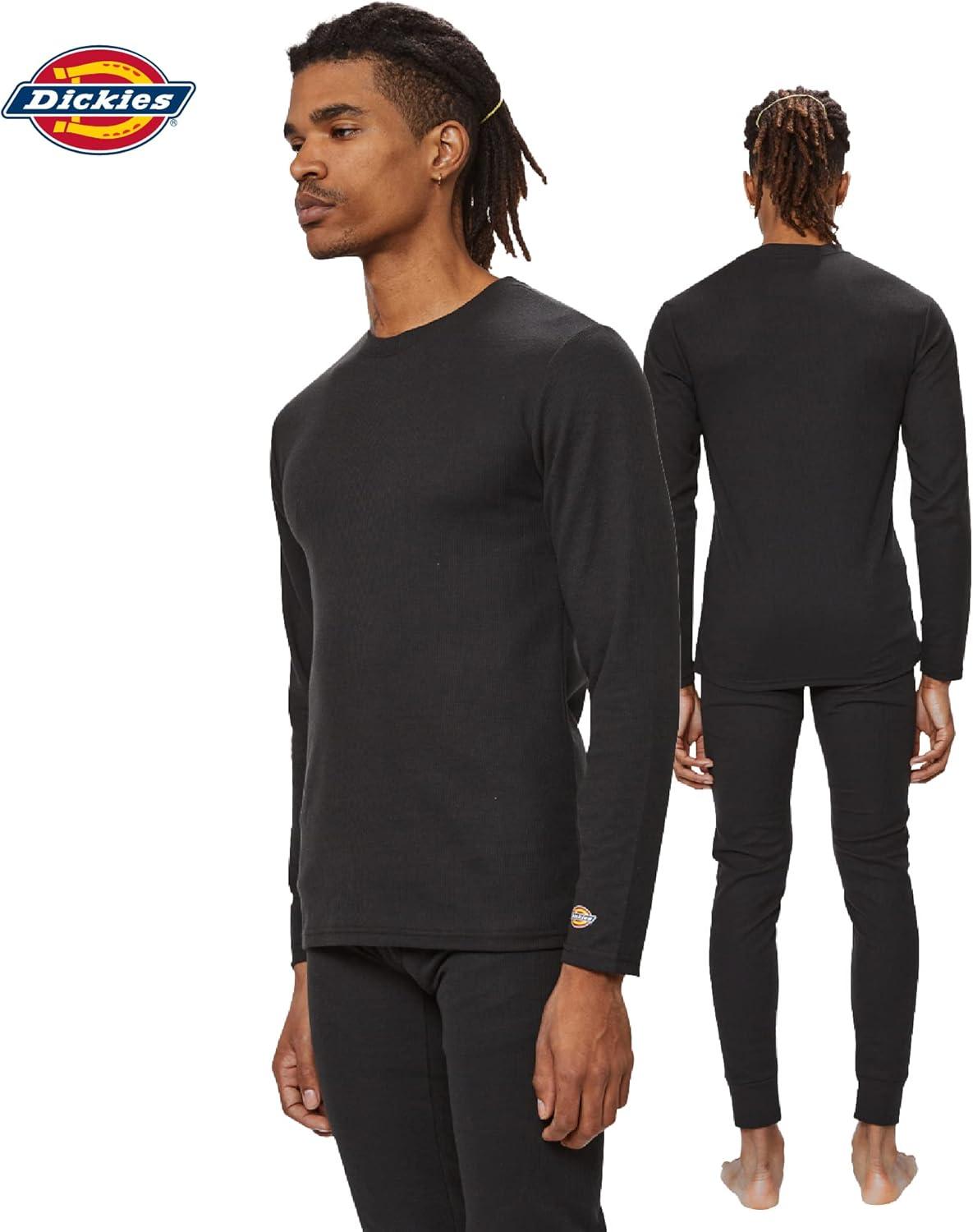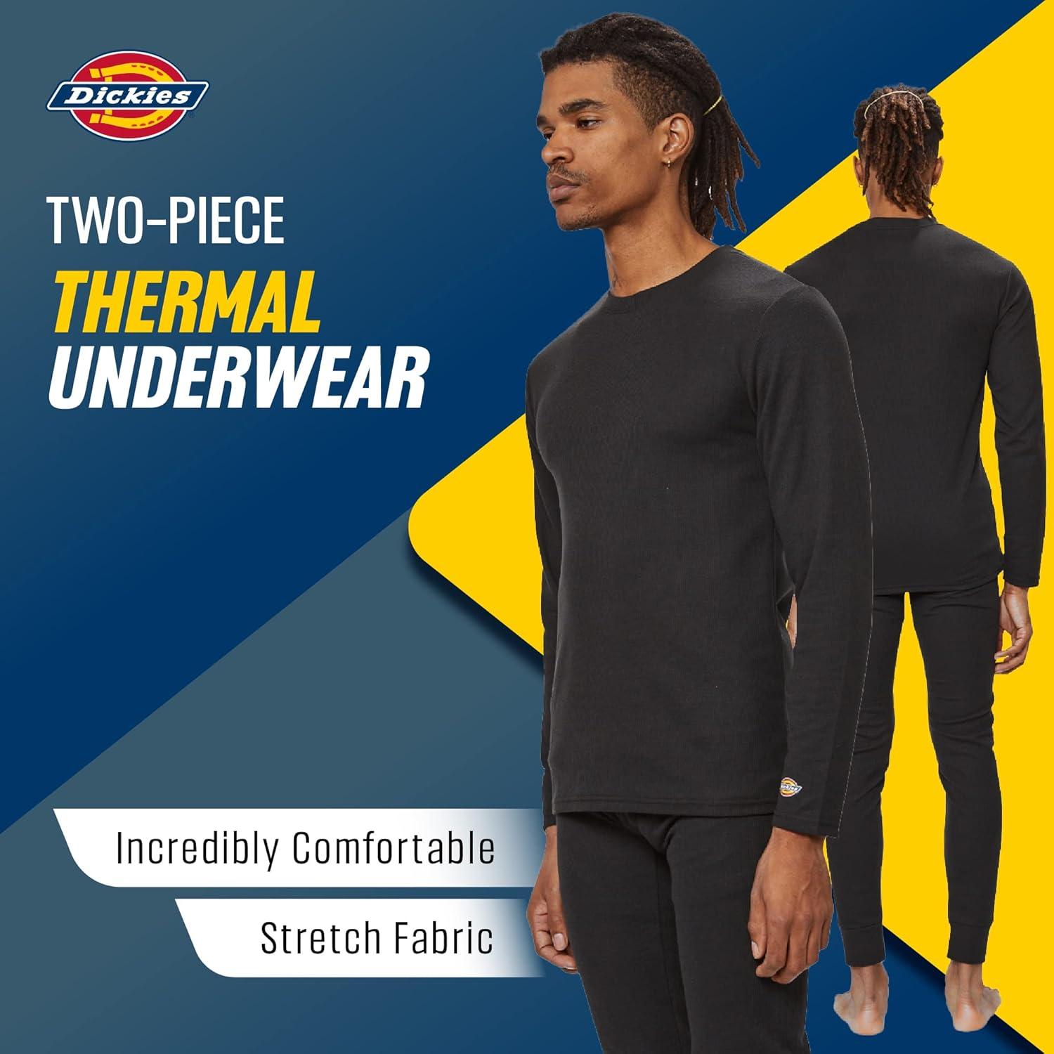 Dickies Mens Long Johns Thermal Underwear Set, 2 Piece Cold Weather Base Layer Set for Men(Black)