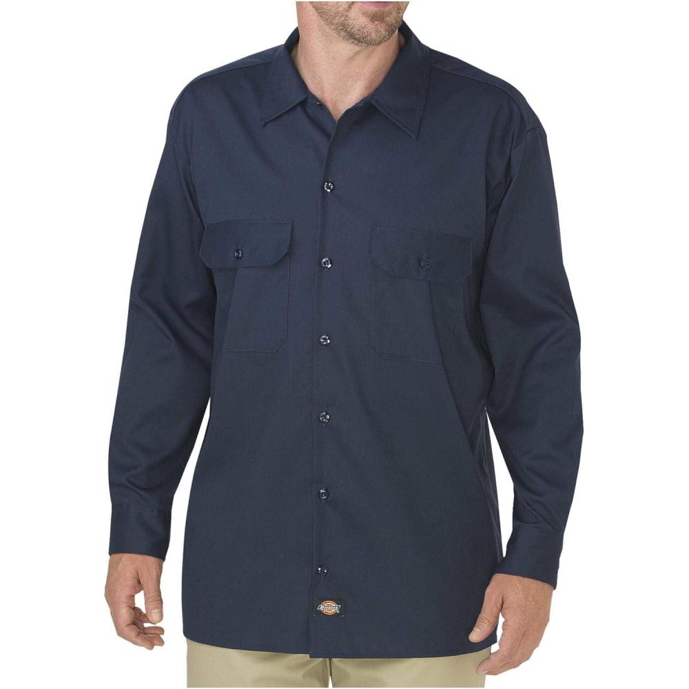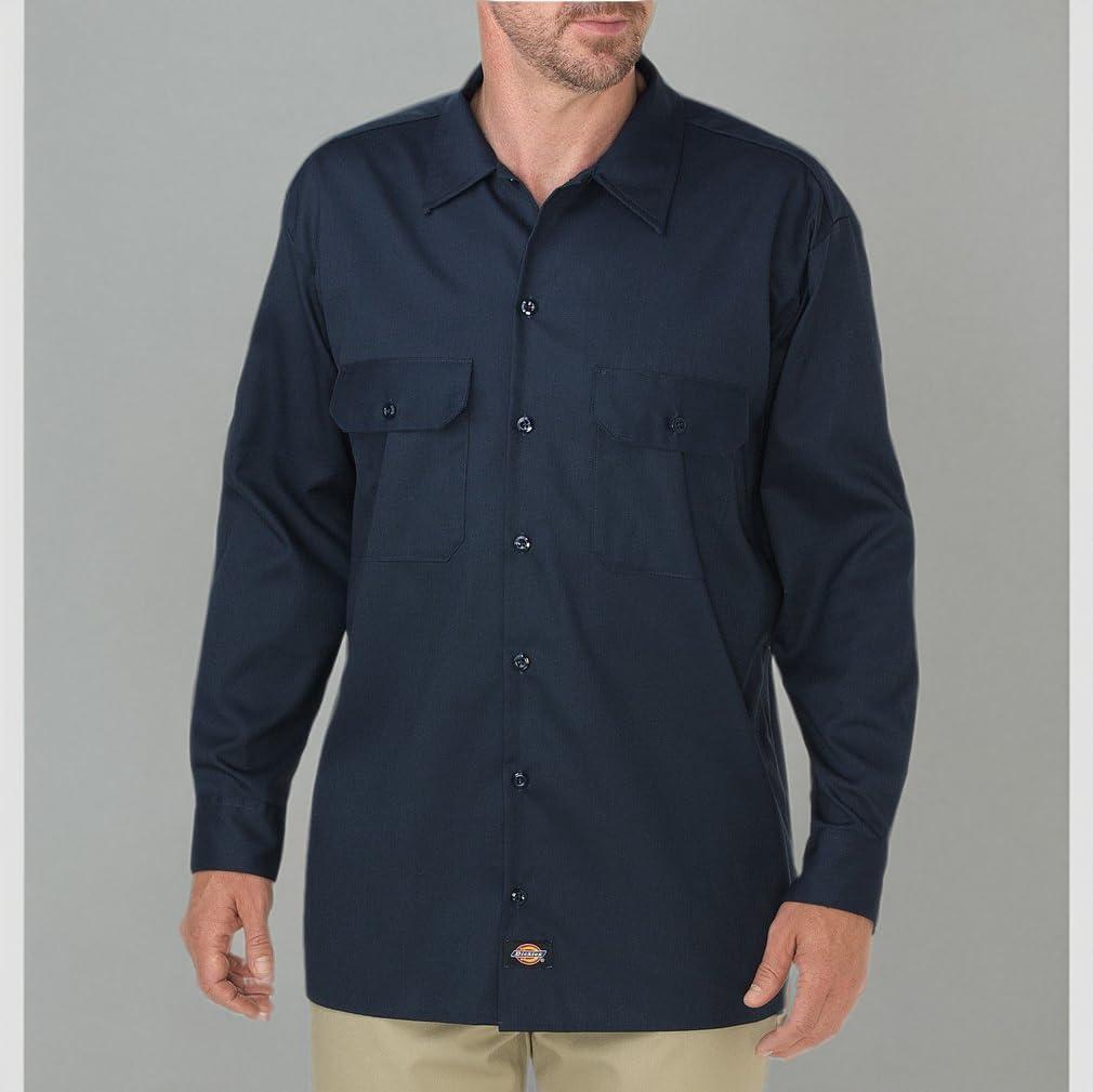 Dickies Men’s Long Sleeve Flex Twill Work Shirt(Dark Navy V1)