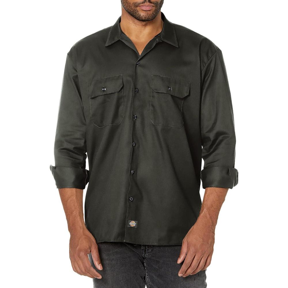 Dickies Men’s Long Sleeve Work Shirt(Olive Green V1)