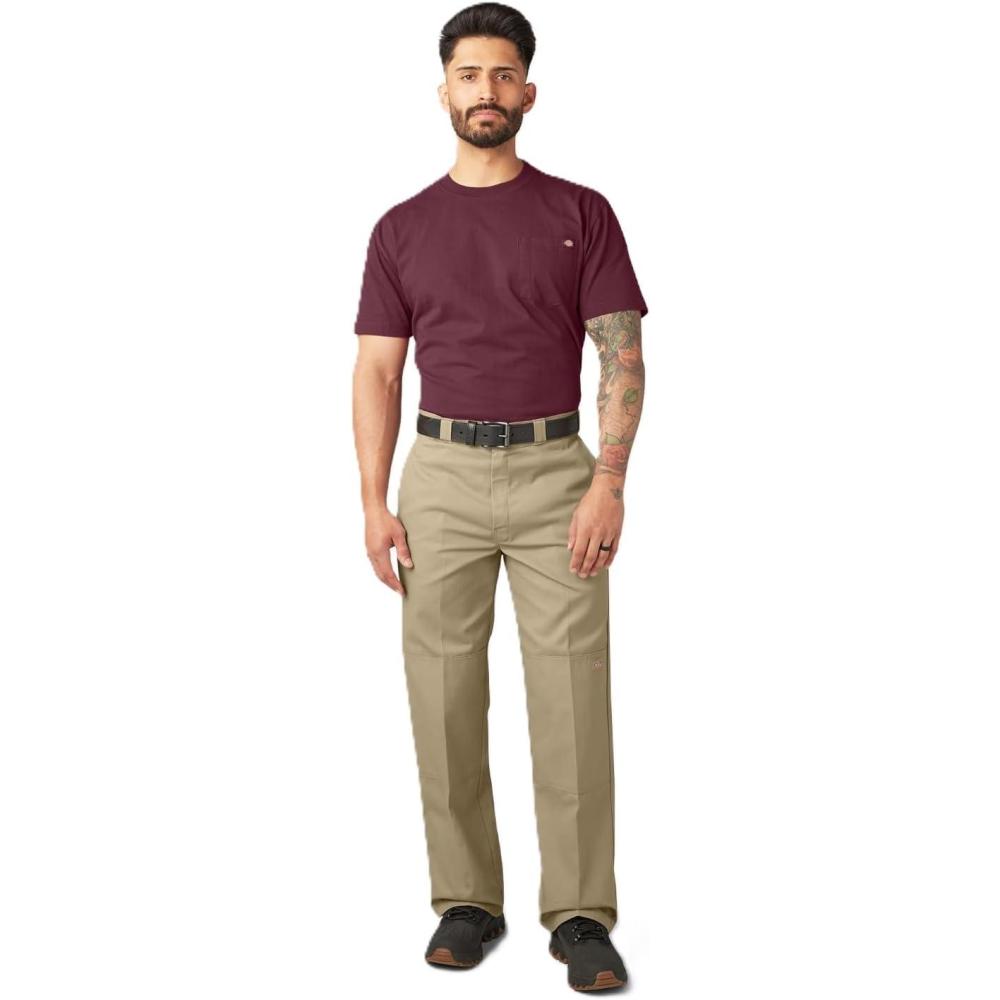 Dickies Men’s Loose Fit Double Knee Work Pants – Durable Twill Utility Trousers for Construction & Warehouse(Khaki)