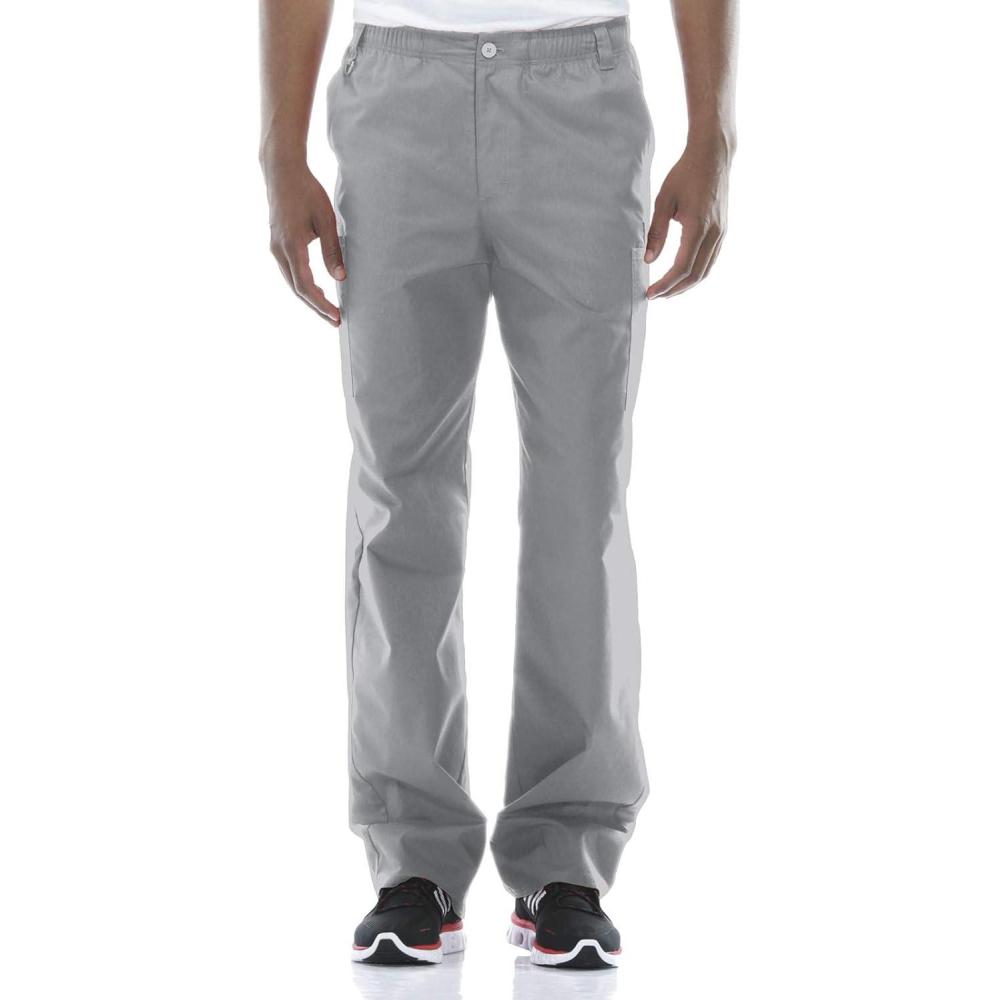 Men's zip fly pull-on pant features an all around elastic waistband with a button closure, an adjustable interior drawstring and Dickies logo twill tape on the inside back waistband. Also featured are slash pockets, cargo pockets and a back pocket with a hook and loop fastener for security, a d-ring on right front belt loop and double-needle topstitching throughout.