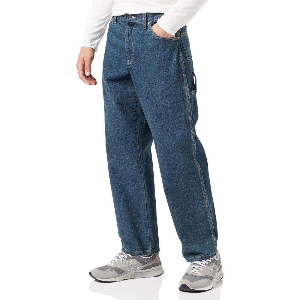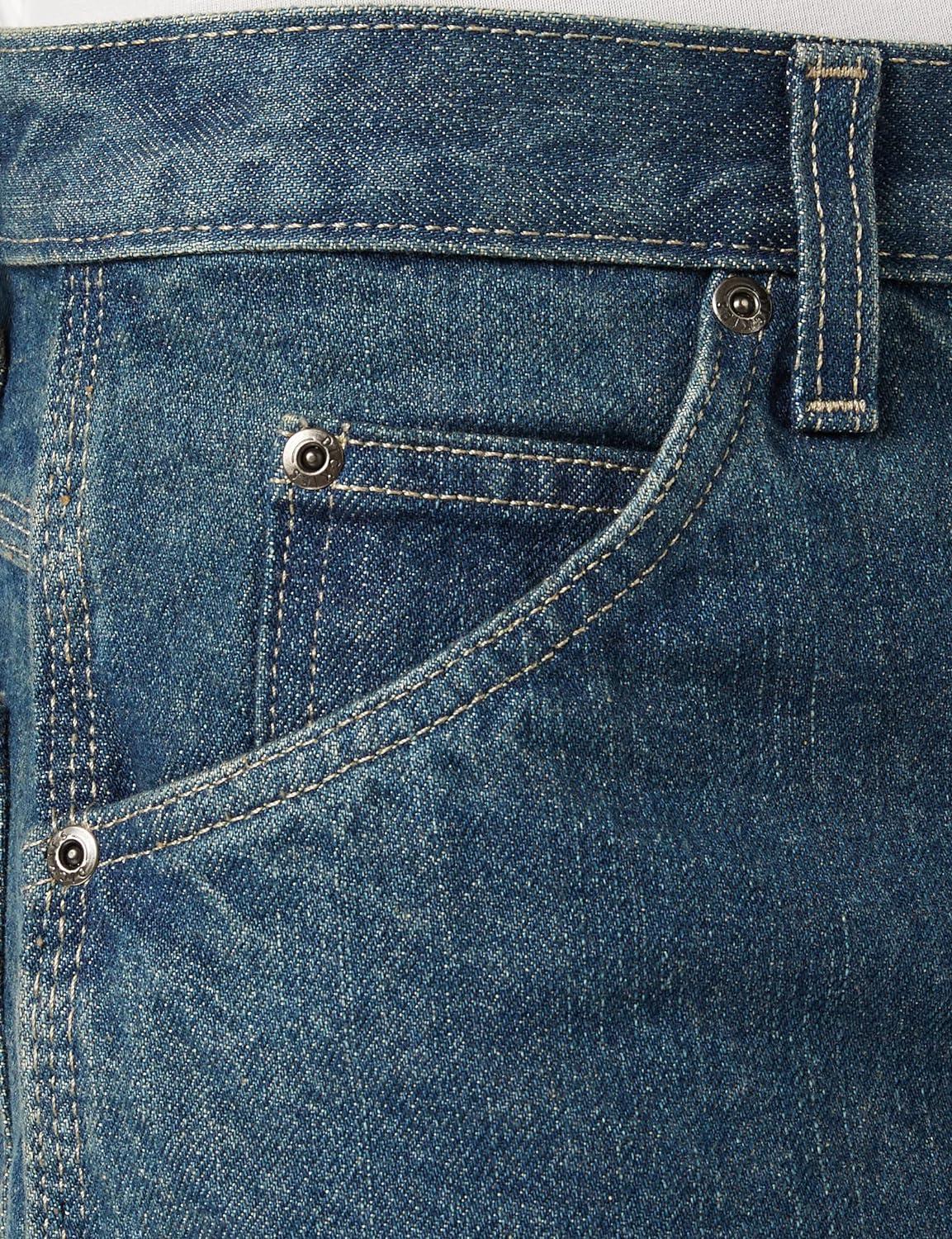 Relaxed fit carpenter jean is roomier through the seat and thigh. Slightly tapered leg opening fits over work boots. Triple stitched seams for more durability.