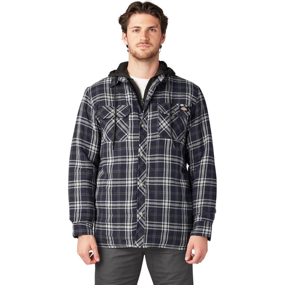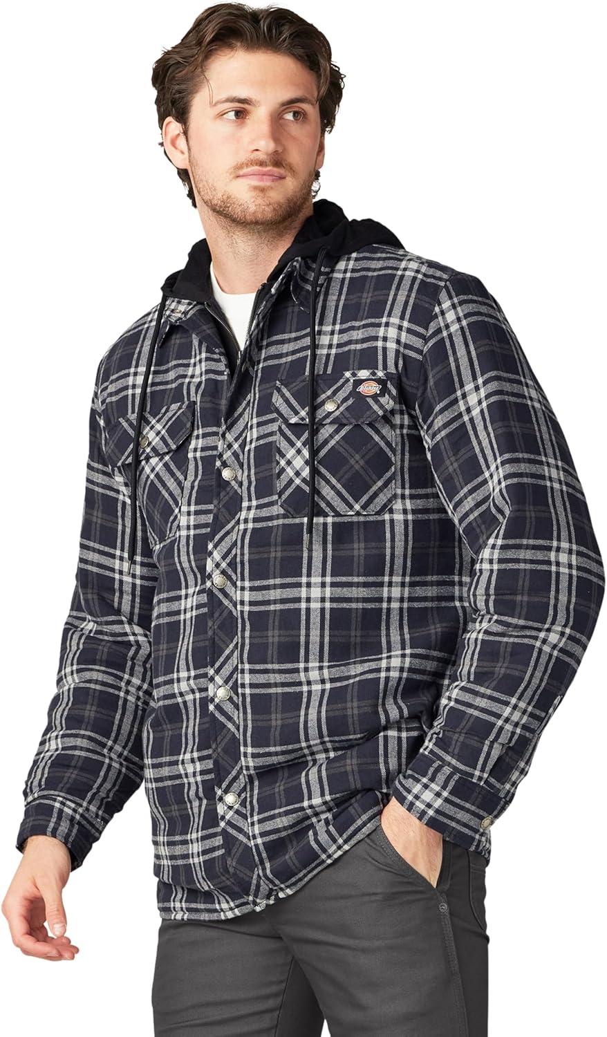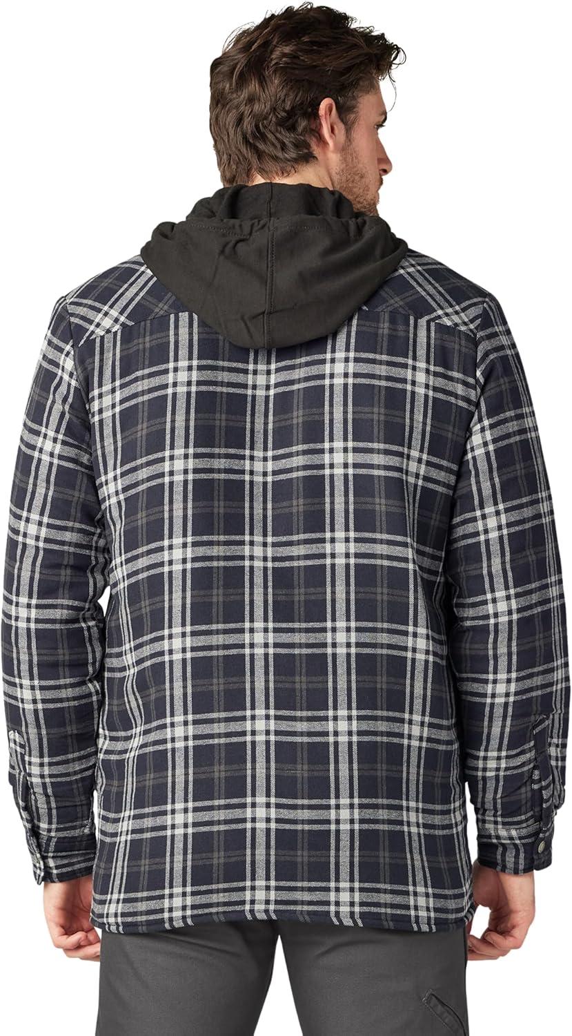 Dickies Men’s Relaxed Fit Icon Hooded Quilted Shirt Jacket(Black Charcoal Plaid)