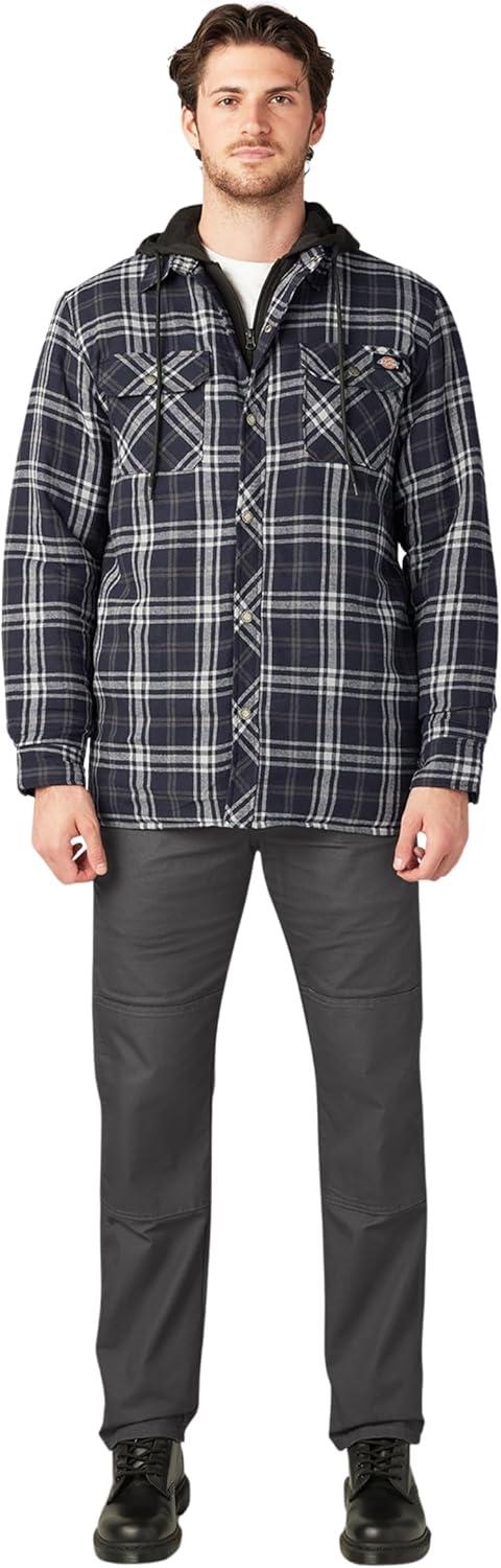 Dickies Men's Relaxed Fit Icon Hooded Quilted Shirt Jacket(Black Charcoal Plaid)