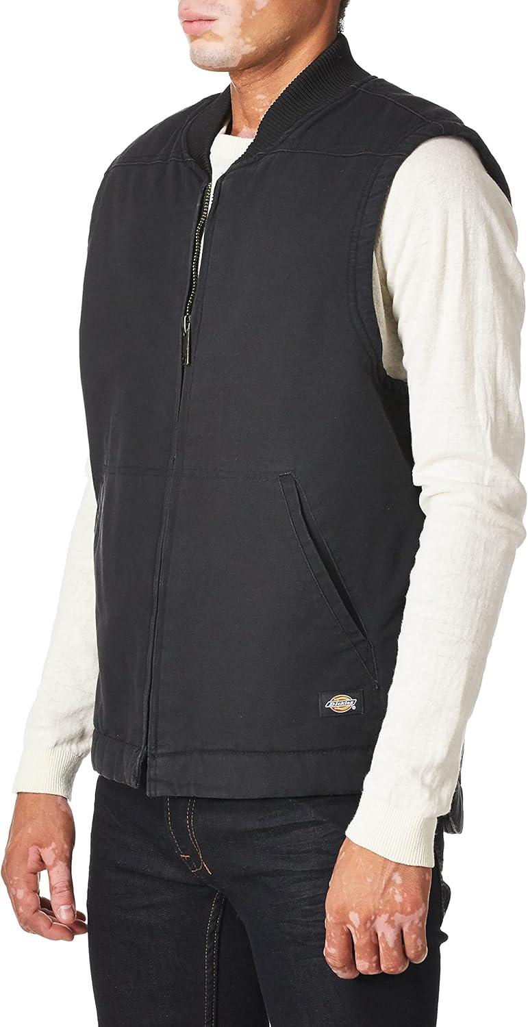 Dickies Men’s Relaxed Fit Sherpa Lined Duck Vest(Rinsed Black V1)