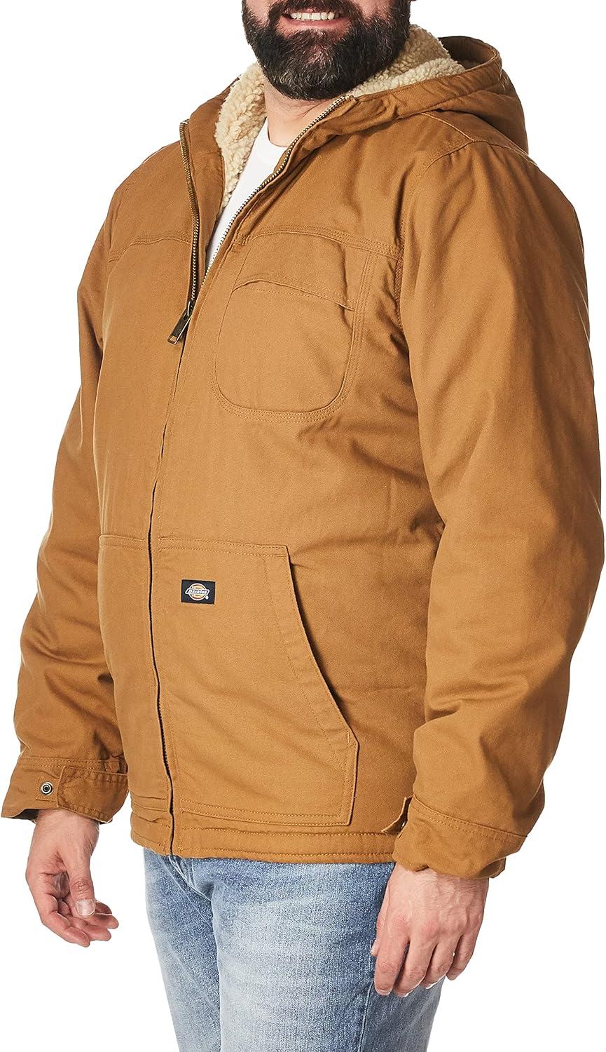 Dickies Men’s Sanded Duck Sherpa Lined Hooded Jacket(Brown Duck V1)