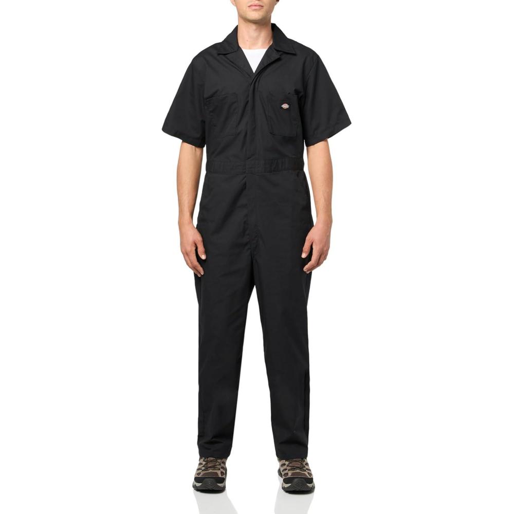 Dickies Men’s Short Sleeve Coverall – Zipper Front Work Jumpsuit for Mechanics, Industrial Overall Uniform(Black V1)