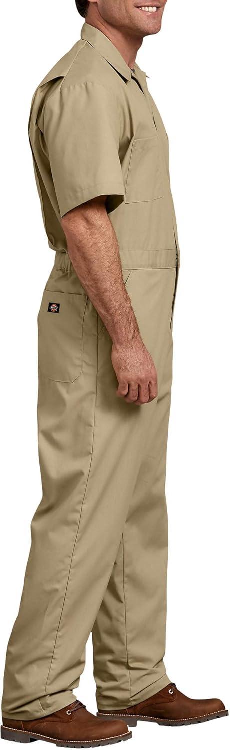 Dickies Men's Short Sleeve Coverall – Zipper Front Work Jumpsuit for Mechanics, Industrial Overall Uniform(Khaki V1)