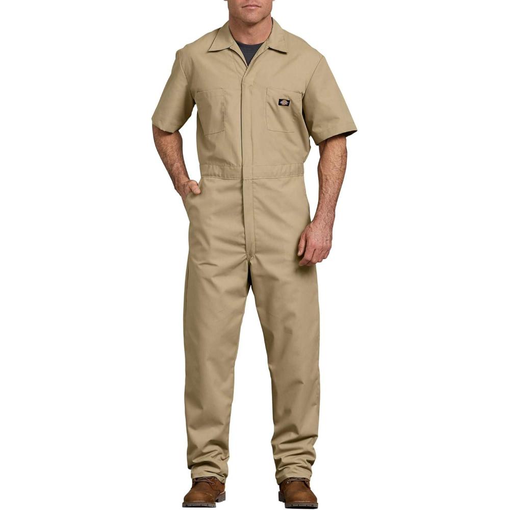 Dickies Men’s Short Sleeve Coverall – Zipper Front Work Jumpsuit for Mechanics, Industrial Overall Uniform(Khaki V1)
