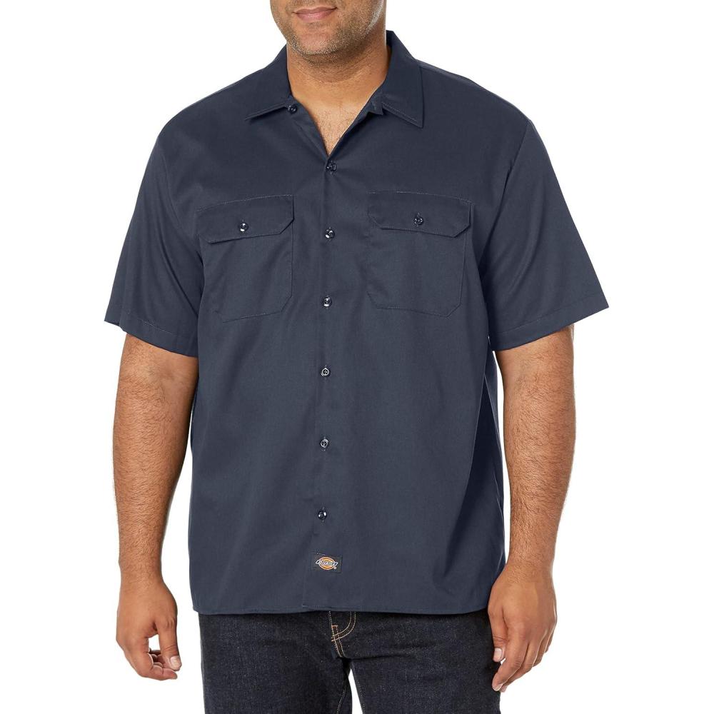 Dickies men's traditional style work shirt in a lighter 4.6 ounce mechanical stretch twill for comfort and ease of movement. Relaxed fit is roomy for all kinds of work activity. Great for a casual look too