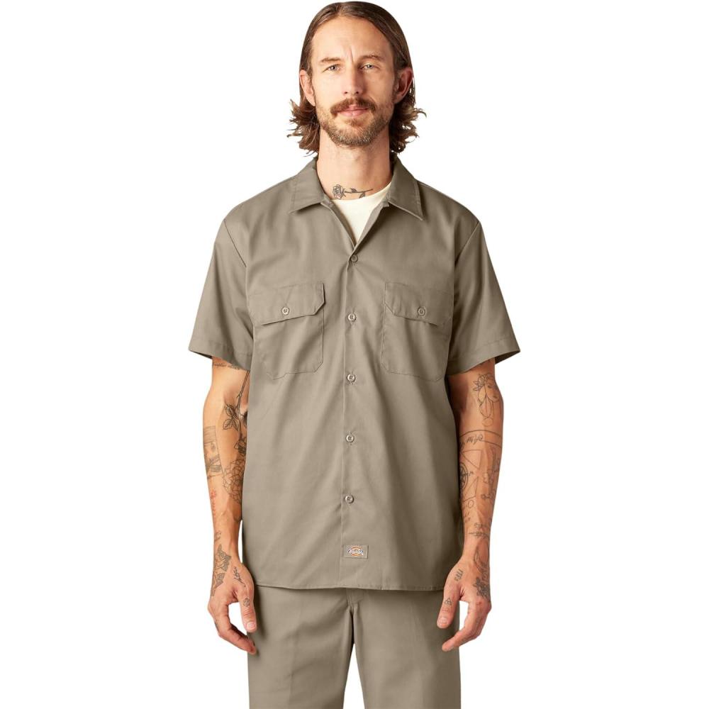 Dickies Men’s Short Sleeve Work Shirt – Durable Twill Button Down Shirts for Men, Lightweight Uniform for Daily Wear(Khaki)