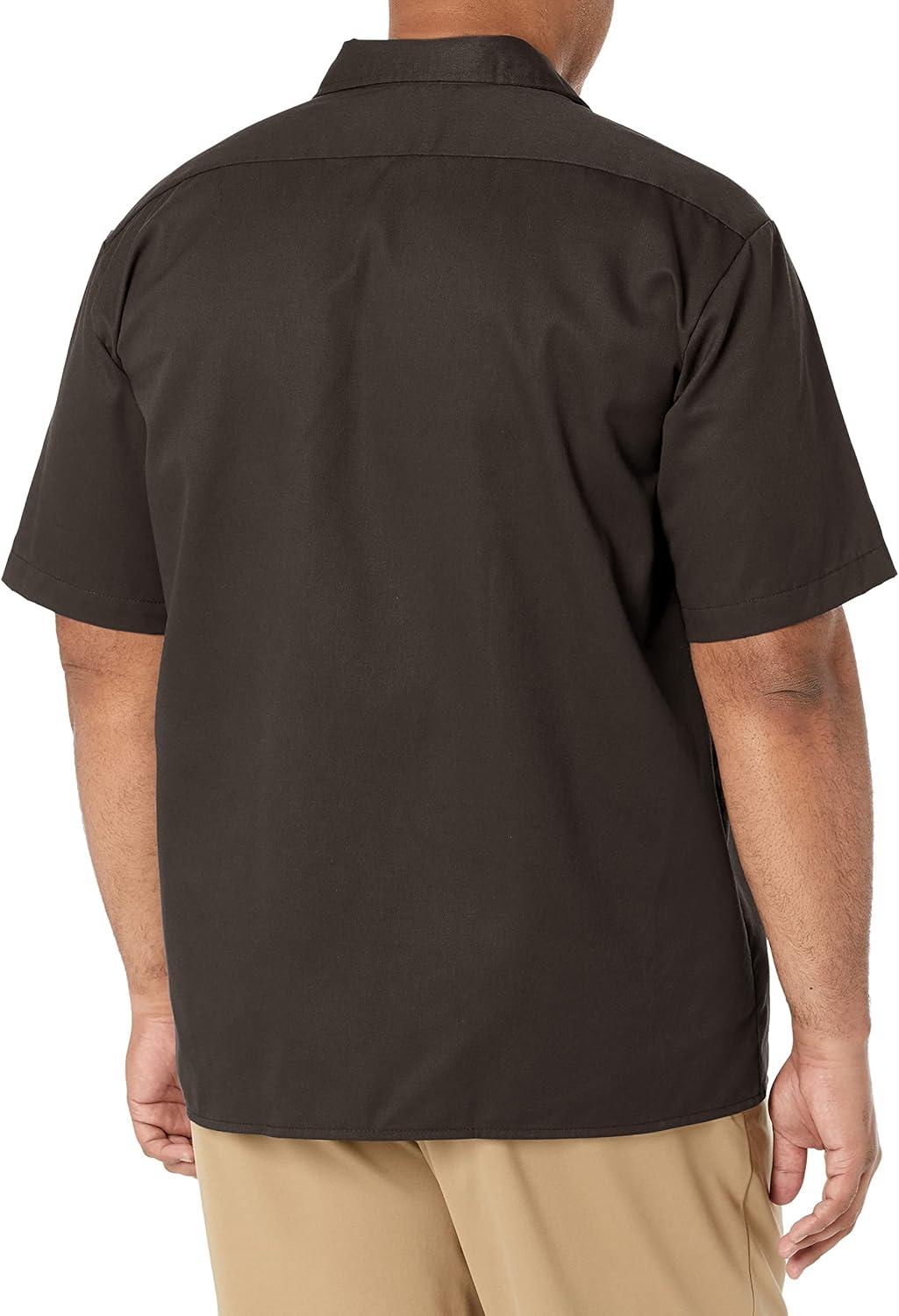 Dickies Men’s Short Sleeve Work Shirt – Durable Twill Button Down Shirts for Men, Lightweight Uniform for Daily Wear(Dark Brown V1)