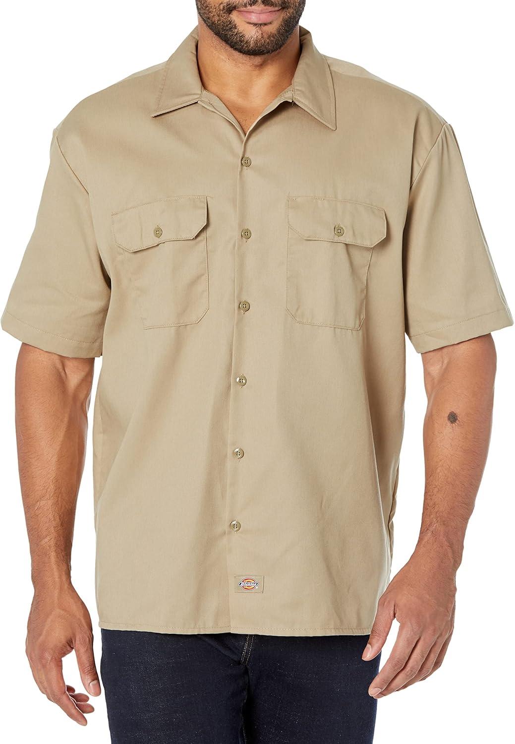 Dickies Men’s Short Sleeve Work Shirt – Durable Twill Button Down Shirts for Men, Lightweight Uniform for Daily Wear(Desert Sand V1)