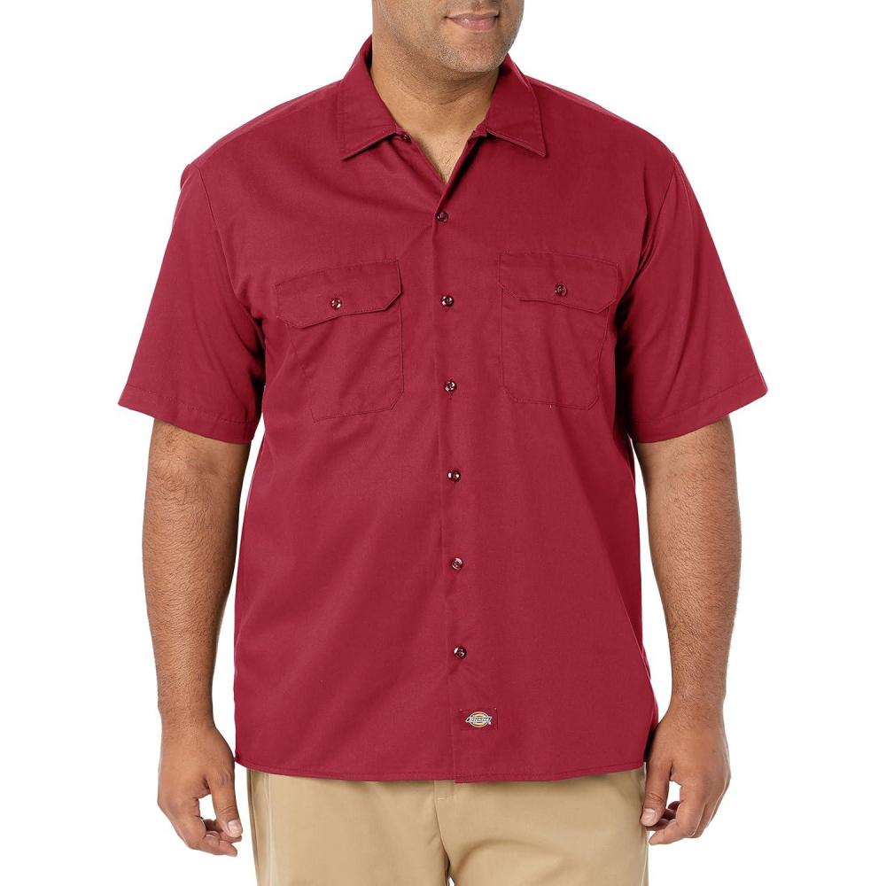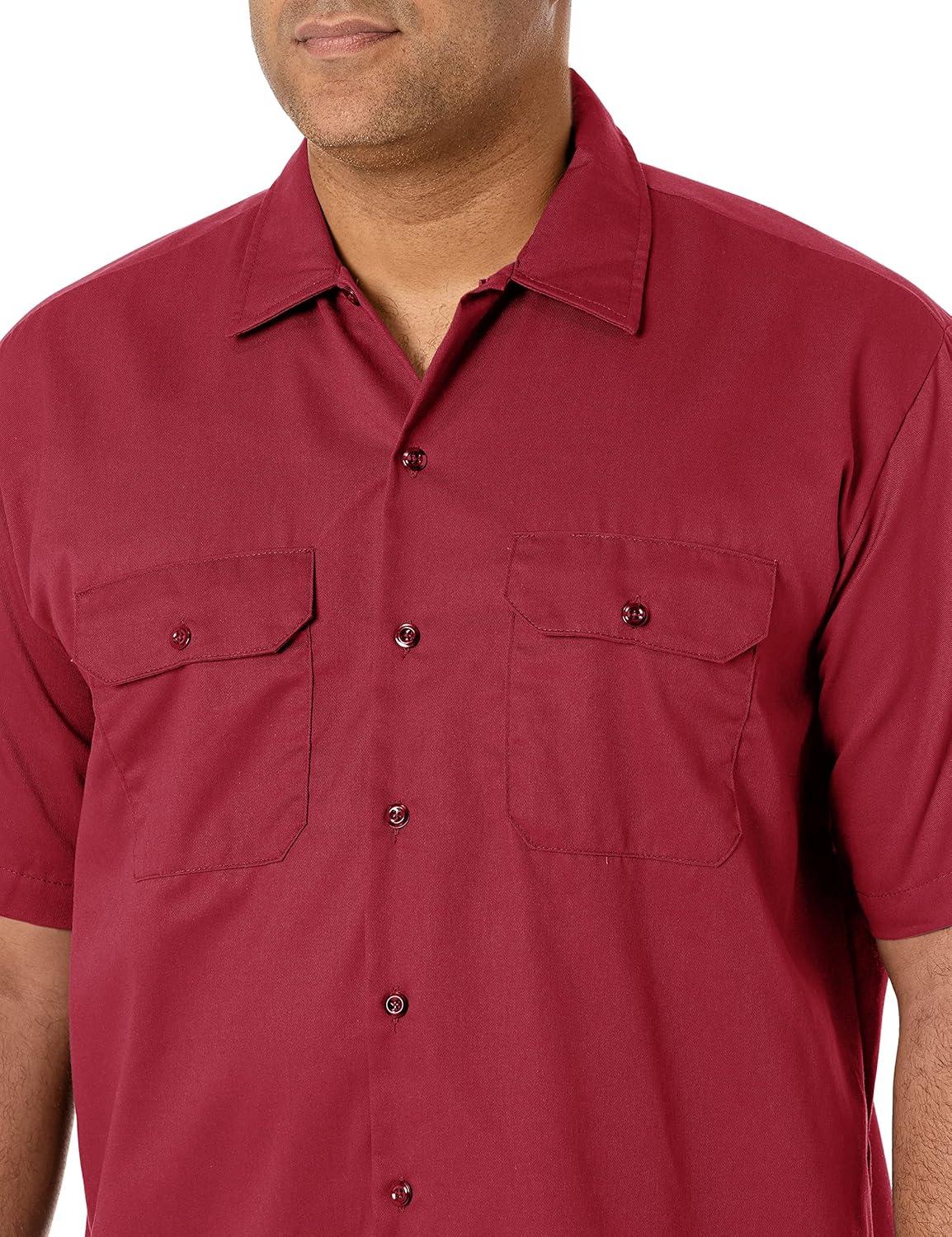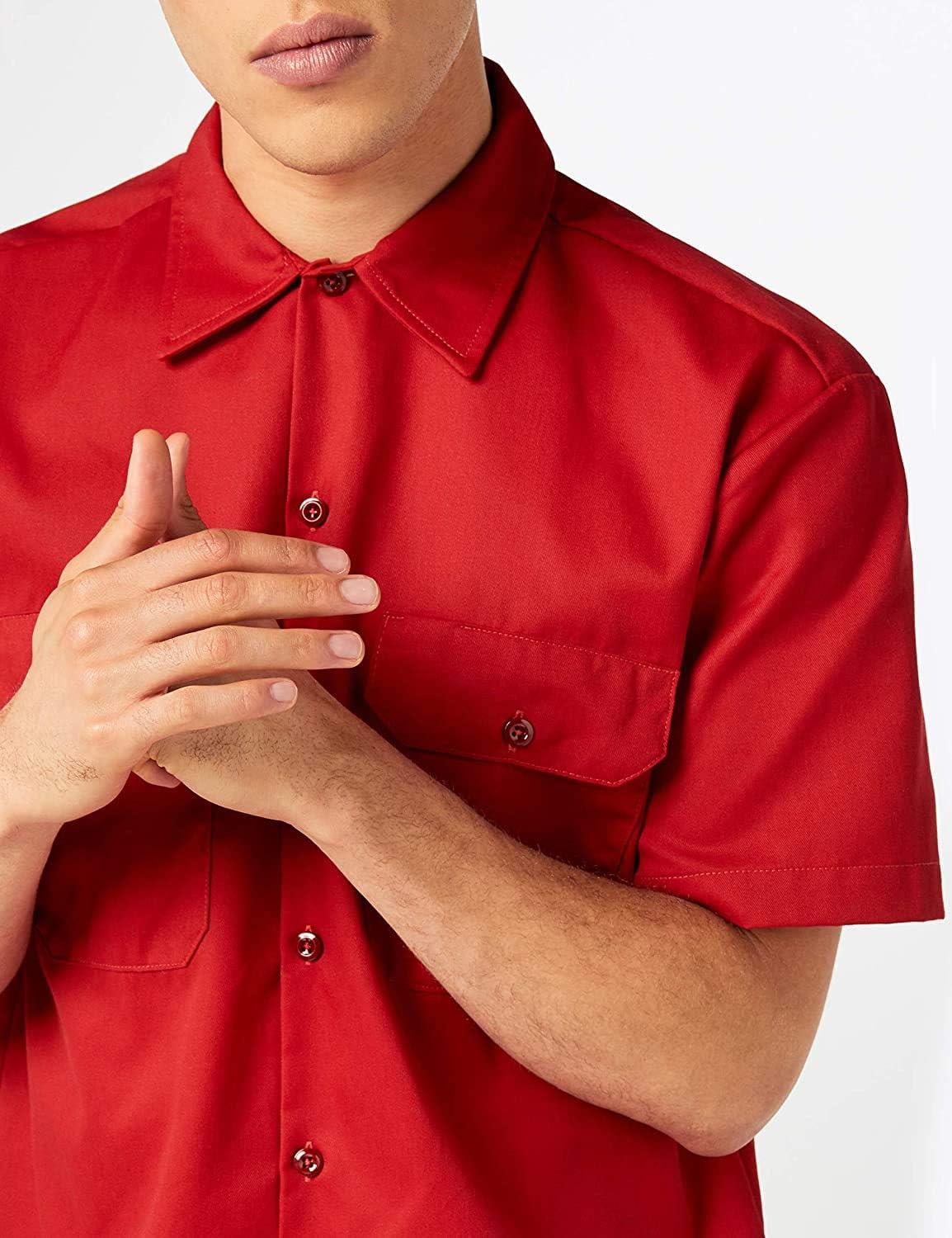Dickies Men’s Short Sleeve Work Shirt – Durable Twill Button Down Shirts for Men, Lightweight Uniform for Daily Wear(English Red Heather V1)